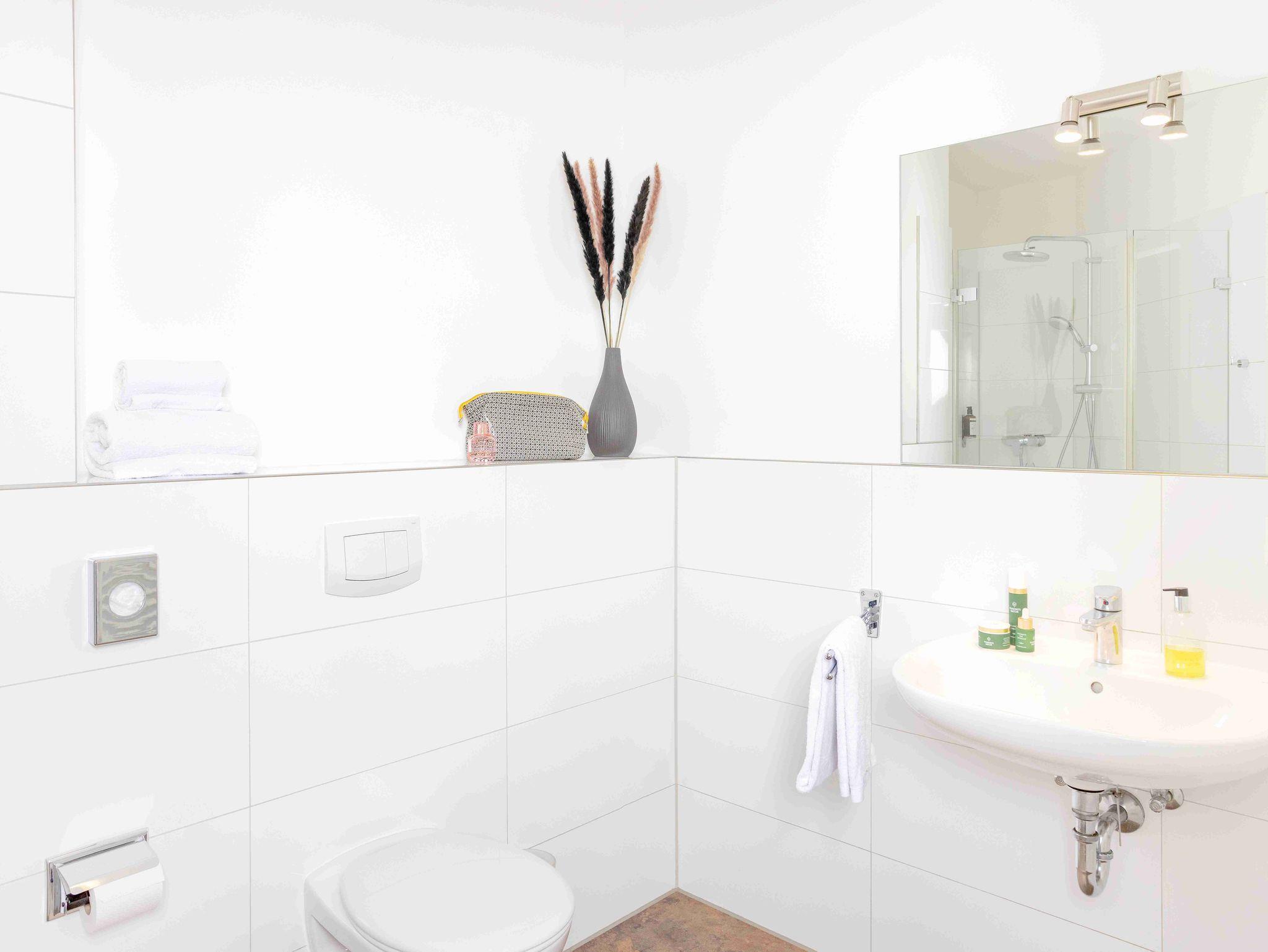 Unsere modernen 1-Raum-Apartments Superior befinden sich im 1. und 2. Obergeschoss mit Blick zum Innenhof. Sie verfügen über einen kleinen Balkon. Zur Ausstattung gehören ein komfortables Boxspringbett, einen Esstisch und eine Sitzecke mit Schlafsofa und Tisch, eine praktische Küchenzeile und ein Badezimmer mit Dusche und WC.