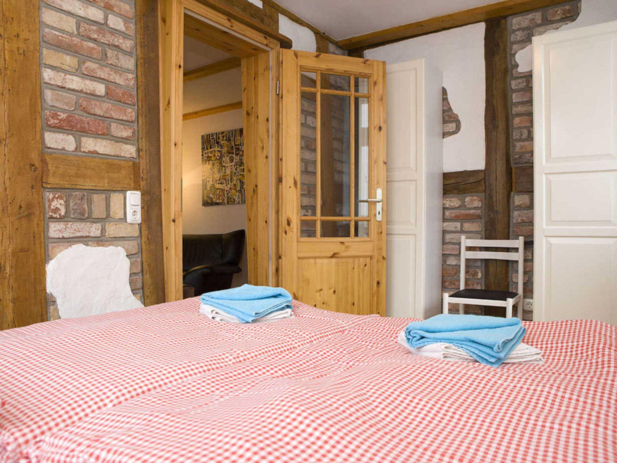 Die Feriwnwohnung verfügt über ein Wohnzimmer und ein Schlafzimmer mit Doppelbett. Die Aufbettung für die 3. und 4. Person befindet sich auf der Schlafcouch im Wohnzimmer.