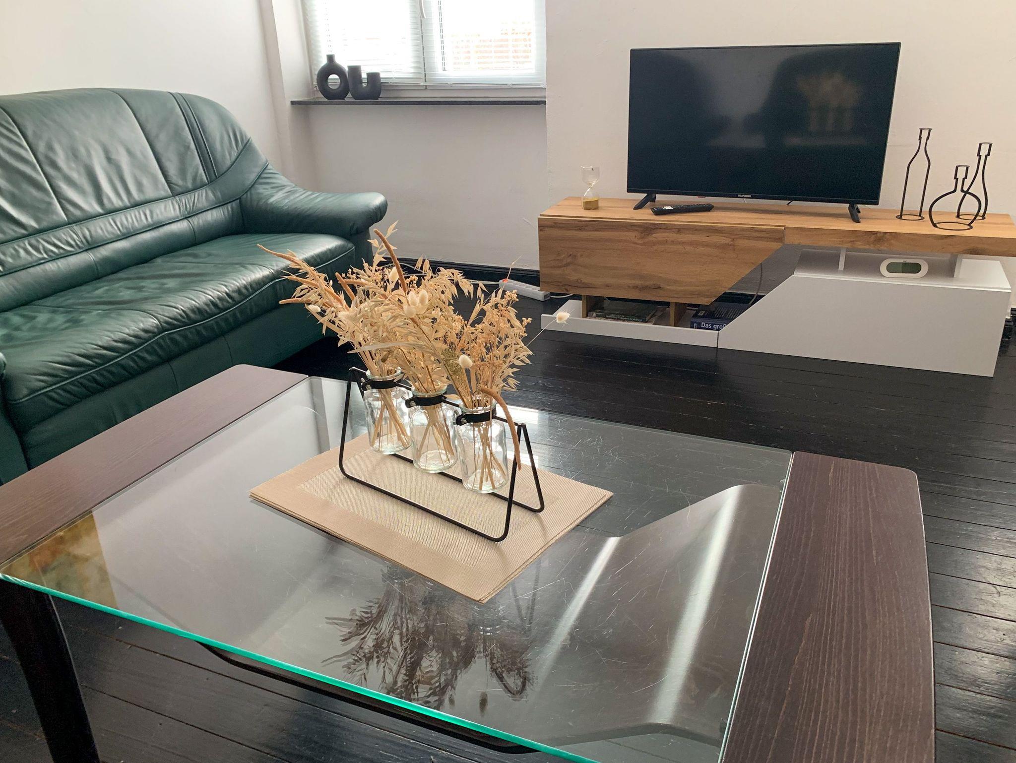 Die Ferienwohnung Alte Sensenschärferfabrik befindet sich im 1. Obergeschoss eines Mehrfamilienhauses und bietet auf 70 m² Platz für bis zu 4 Personen. Nach dem Treppenaufgang kommst du in die Wohnung, die funktional und freundlich eingerichtet ist und sich ideal als Basis für Stadt, Arbeit und Ausflüge eignet. Es stehen dir zwei separate Schlafzimmer zur Verfügung. Beide Schlafzimmer sind jeweils mit zwei Einzelbetten (90x200) ausgestattet und bieten Stauraum für dein Gepäck. Das Wohnzimmer ist der zentrale Aufenthaltsbereich mit Sofa und TV eignet es sich gut zum Abschalten nach einem langen Tag. Die Küche ist komplett ausgestattet und bietet Herd, Backofen, Mikrowelle, Kühl-Gefrierkombi und Geschirrspüler. Von hier aus hast du Zugang zum kleinen Balkon, der sich gut für eine kurze Pause zwischendurch eignet.