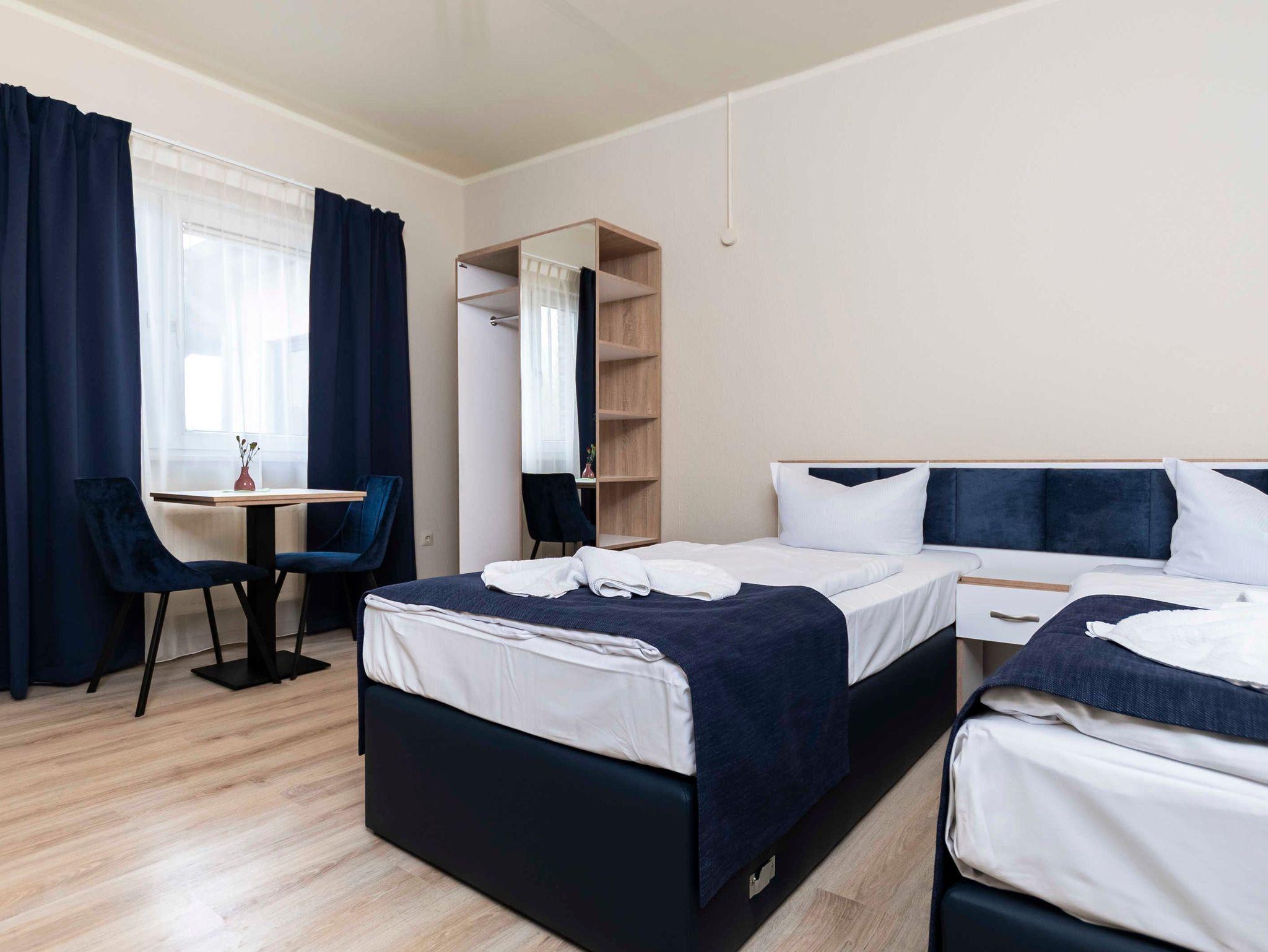 Gemütliches Doppelzimmer im Aparthotel Stralsund, ruhig gelegen mit moderner Ausstattung und Fahrradraum.