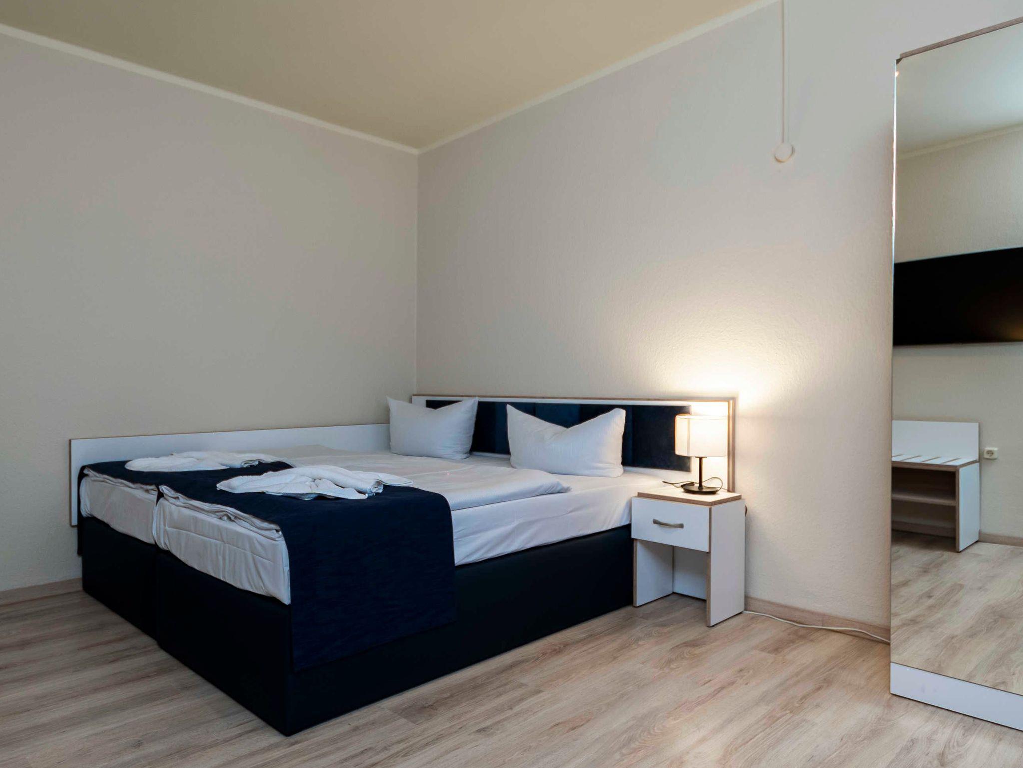 Modernes Doppelzimmer im Aparthotel Stralsund