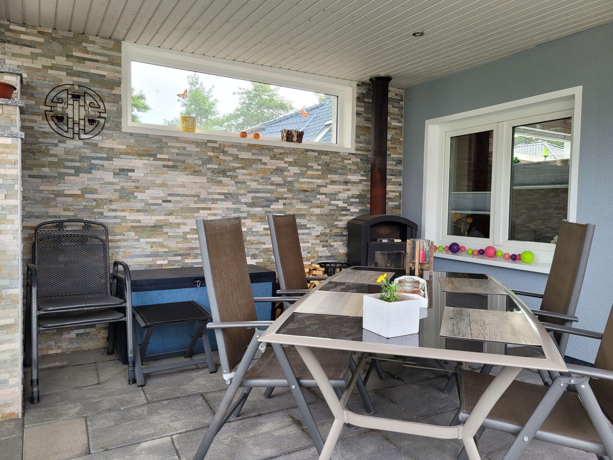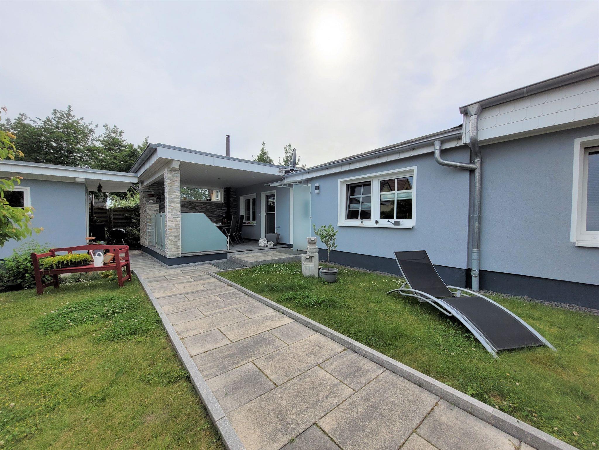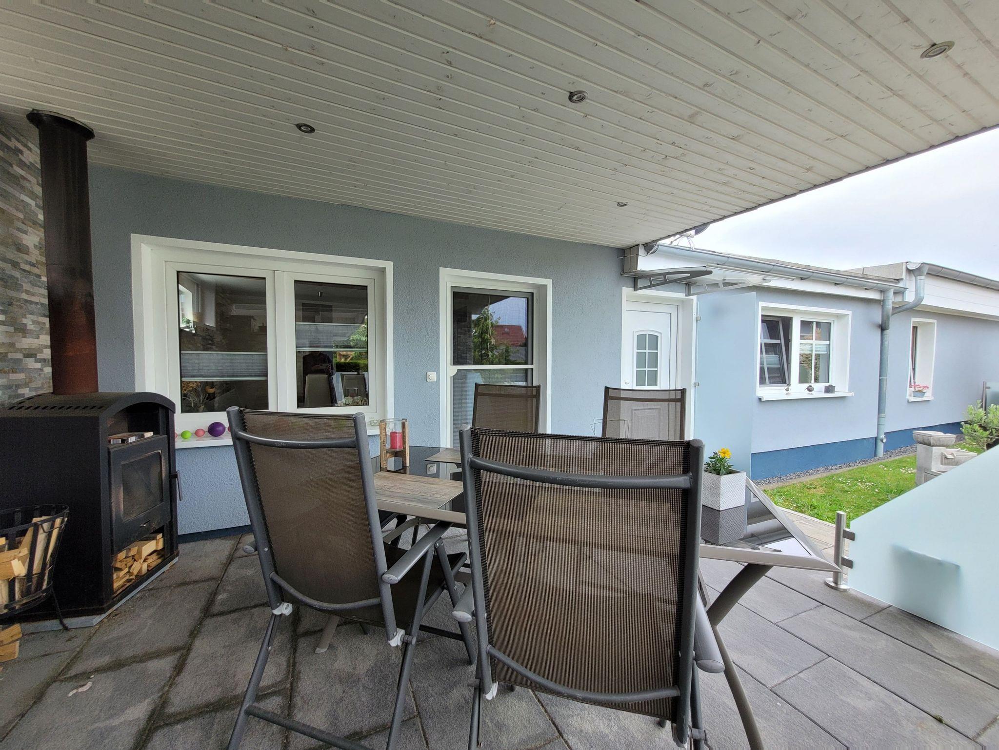 Moderne Ferienwohnung in Stralsund mit überdachter Terrasse und E-Bike-Ladestation in ruhiger Lage nahe Zentrum.