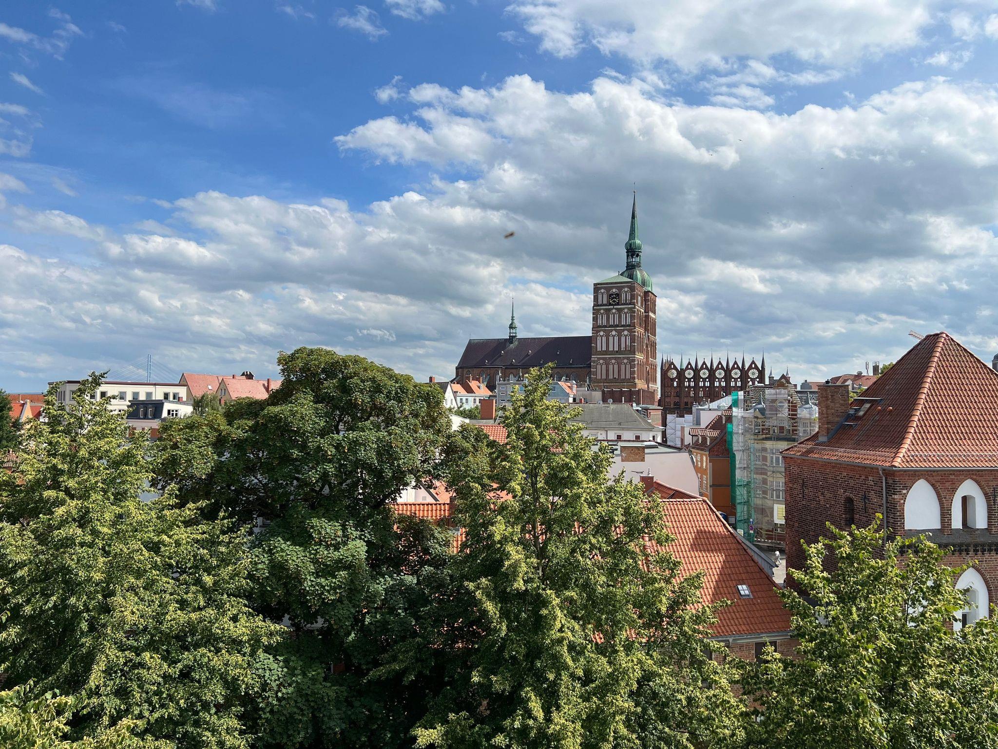 In einer Minute sind Sie am Alten Markt - er zählt zu den schönsten im Ostseeraum - oder am Wasser, 200 Meter weiter kommen Sie zum Hafen, wo die Schiffe nach Hiddensee oder Altefähr ablegen und das Ozeaneum ist. Nur wenige Meter vom Haus entfernt liegen auch der Bootsverleih am Knieperteich, die Schillanlage und die Sundpromenade, die zum Strandbad führt.