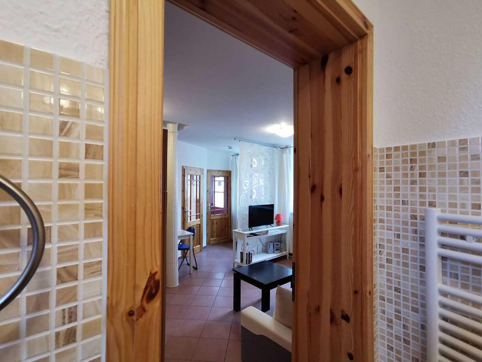Die Ferienwohnung verfügt über ein Wohnzimmer mit offener Küche und einem Schlafzimmer mit Doppelbett.