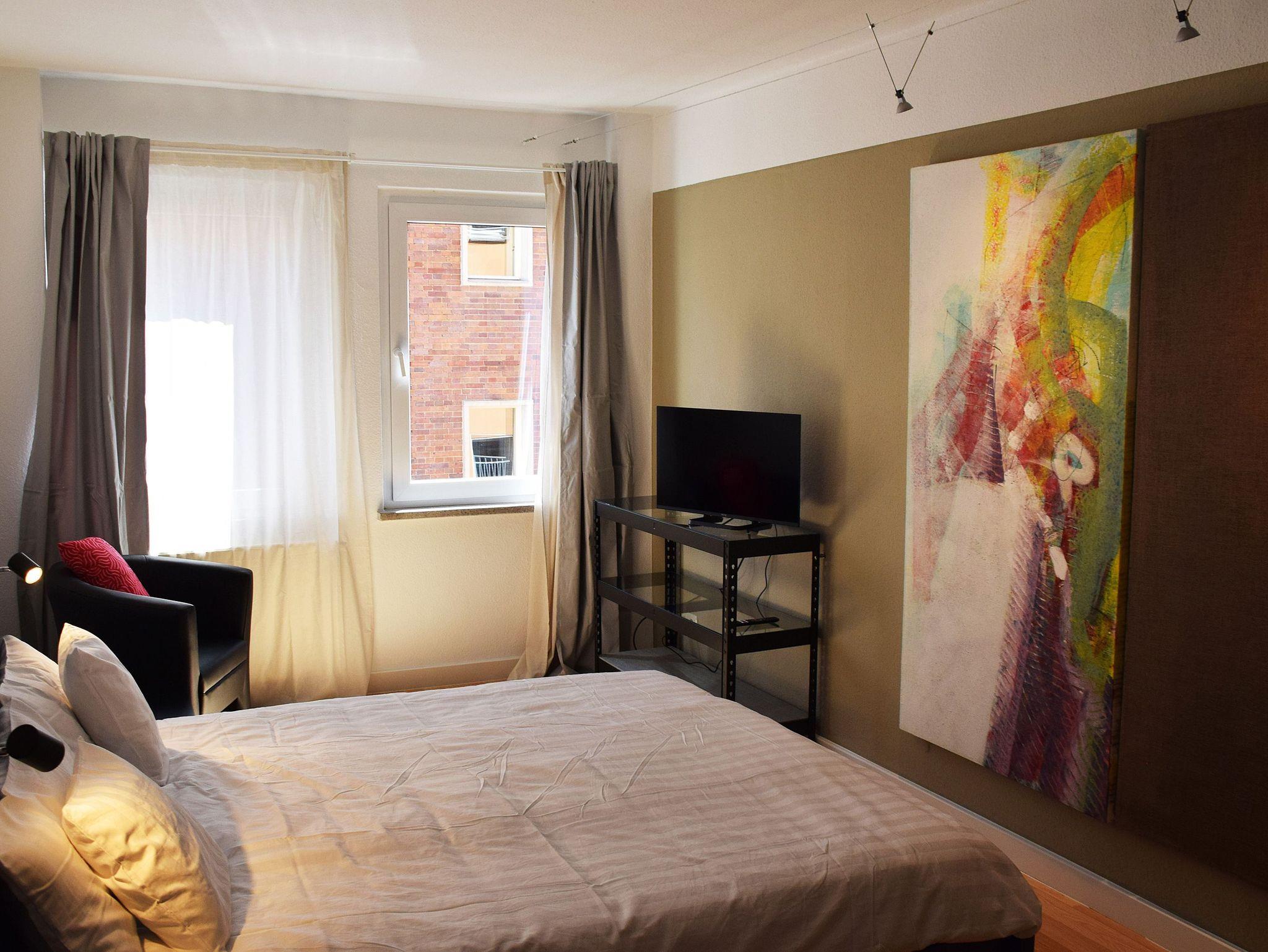 Betrachten Sie die Dachlandschaft unserer Vergangenheit aus der Vogelperspektive. Das Altstadt-Kreativquartier hat eine Dachterrasse und vier separate Doppelzimmer auf zwei Etagen, die sich zwei Küchen und Bäder teilen. Sie können Ihre Mahlzeiten selbst zubereiten und sich von Ihren Mitreisenden inspirieren lassen. Großformatige Bilder schmücken die Wände und regen zum Malen an. Bei Bedarf kann ein Kinderbett (bis 3 Jahren) gestellt werden. Auch Waschmaschine und Trockner sind vorhanden. Gelegen zwischen Altem Markt und Kniepertor befinden Sie sich mitten im Geschehen. Restaurants und Cafés, Läden, ein Discounter, das Theater und mehrere Museen, alles ist fußläufig zu erreichen. Öffentliche Verkehrsmittel und ein Parkhaus sind nur 200 Meter entfernt.