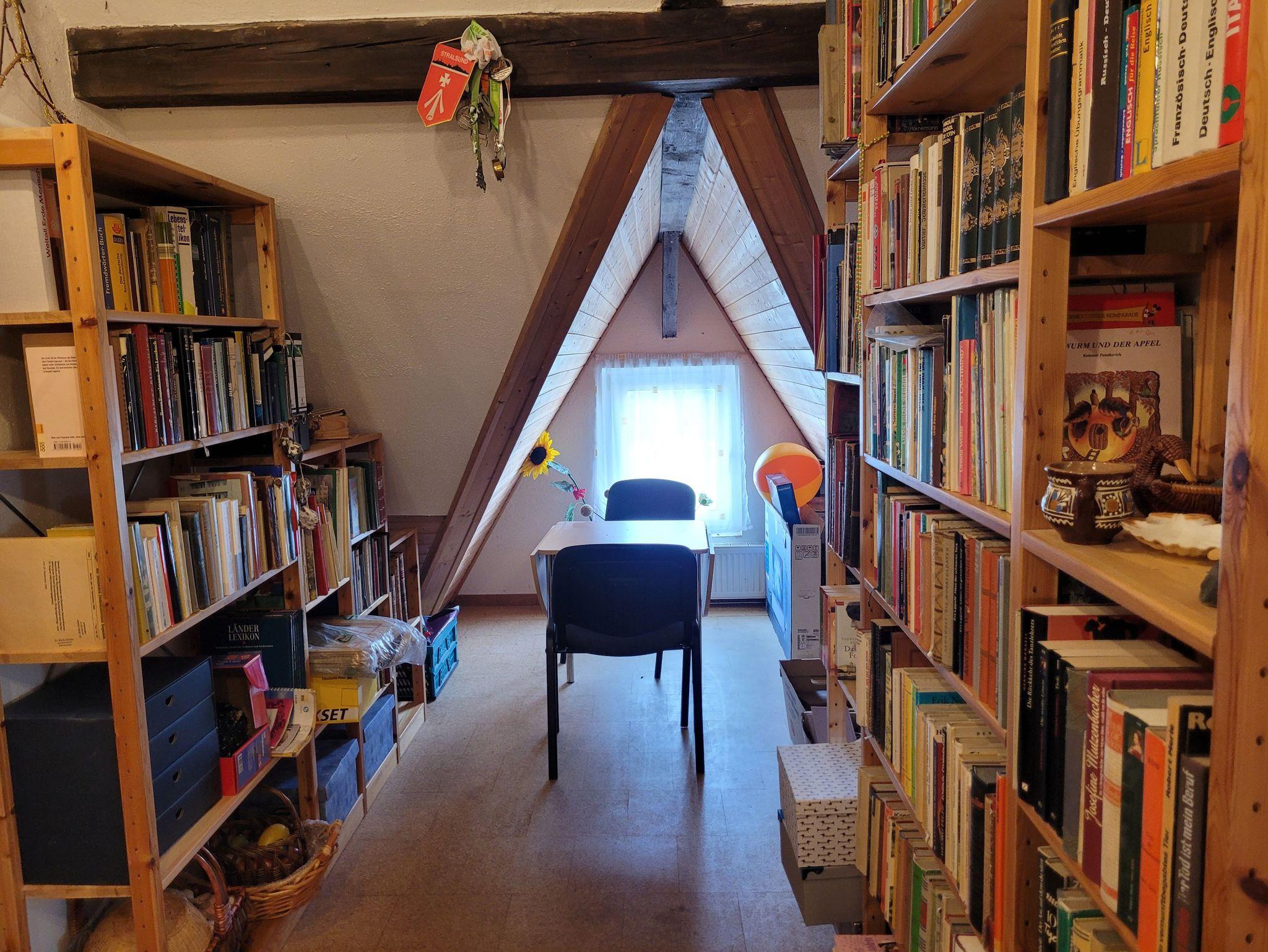 • Ferienwohnung (1.Etage) verfügt über 2 Etagen (1.Etage: Flur, Küche, Esszimmer, Schlafzimmer, Bad; 2.Etage/ Dachgeschoss: Bücher-Boden und 2. Schalfzimmer)