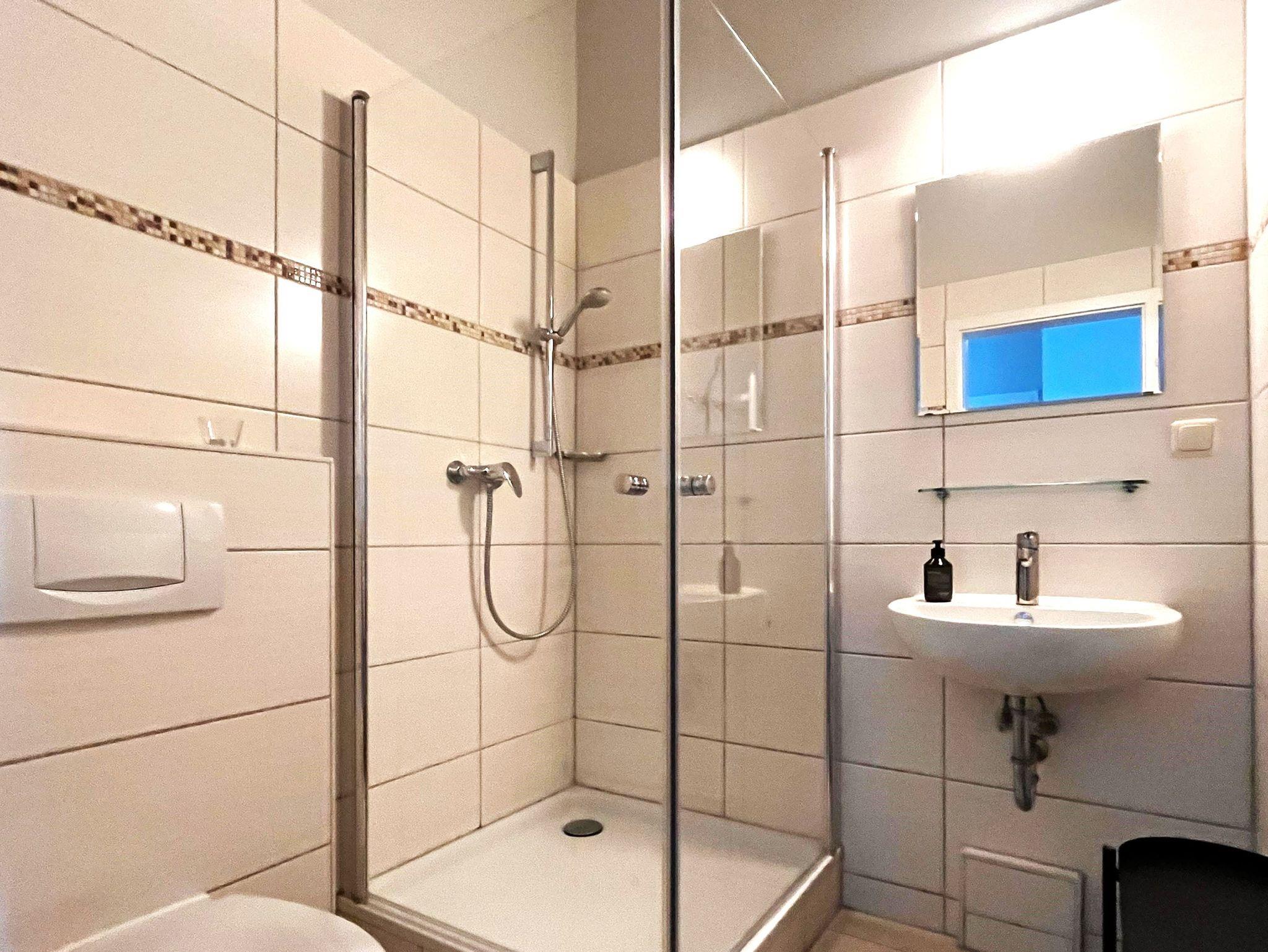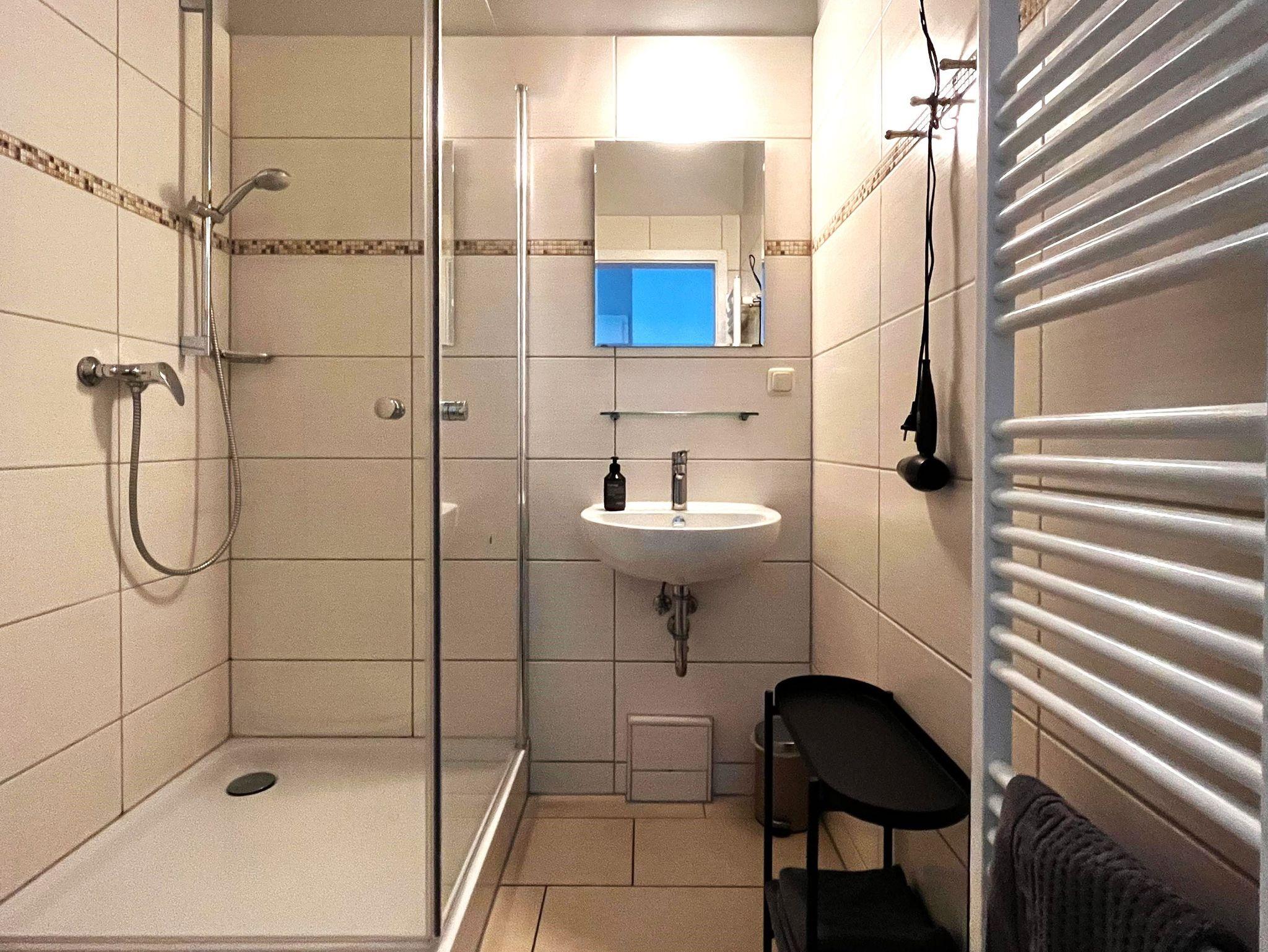 Das Apartment teilt sich mit den anderen Apartments eine Gemeinschaftsküche, welche sich auf dem Flur und abgeschlossen von Bereichen außerhalb der Apartments befindet.