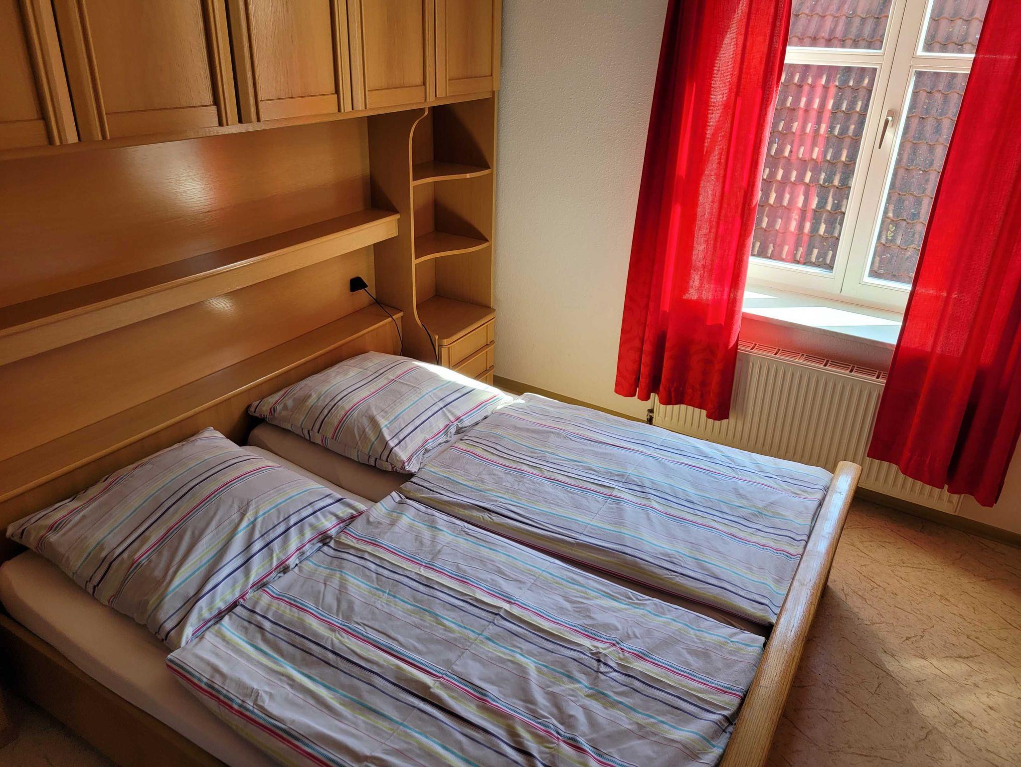 Die Ferienwohnung befindet sich im 2.OG in der Langenstraße 33 in einem circa 150 Jahre alten denkmalgeschützten Haus. Sie verfügt über drei Schlafzimmer (zwei Zimmer mit Doppelbett und ein Zimmer mit Dachschräge und zwei Einzelbetten), Wohnzimmer, Küche und Bad. Die Küche ist komplett ausgestattet.