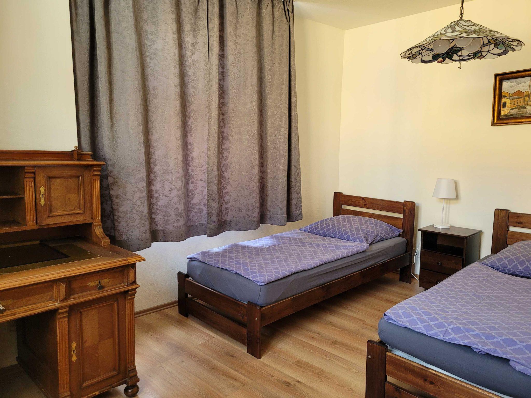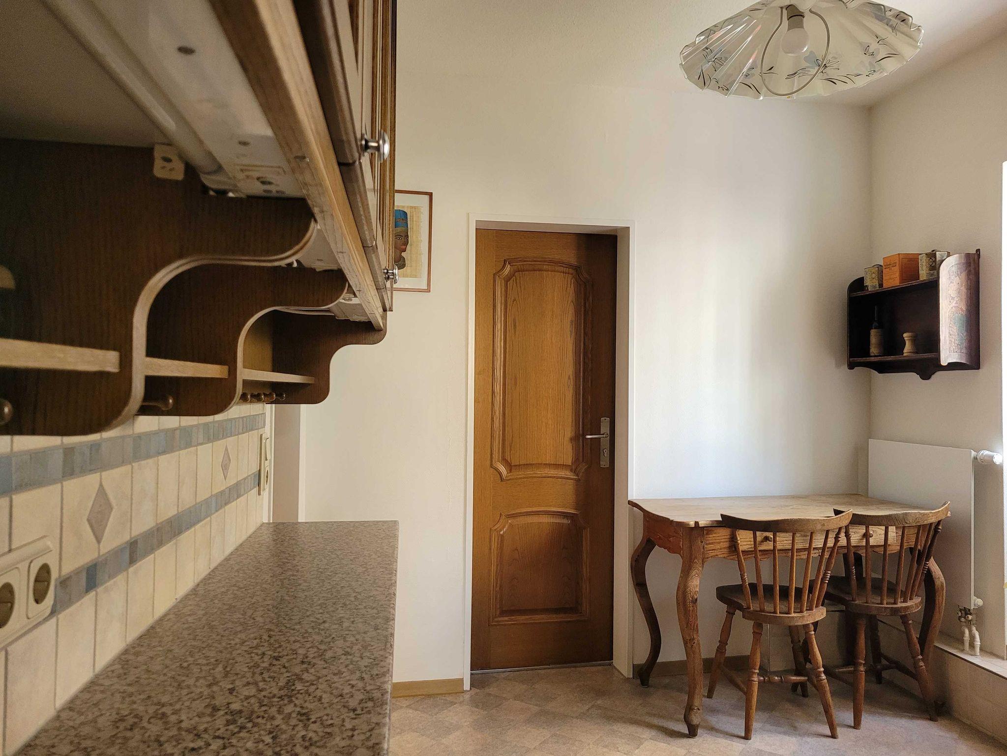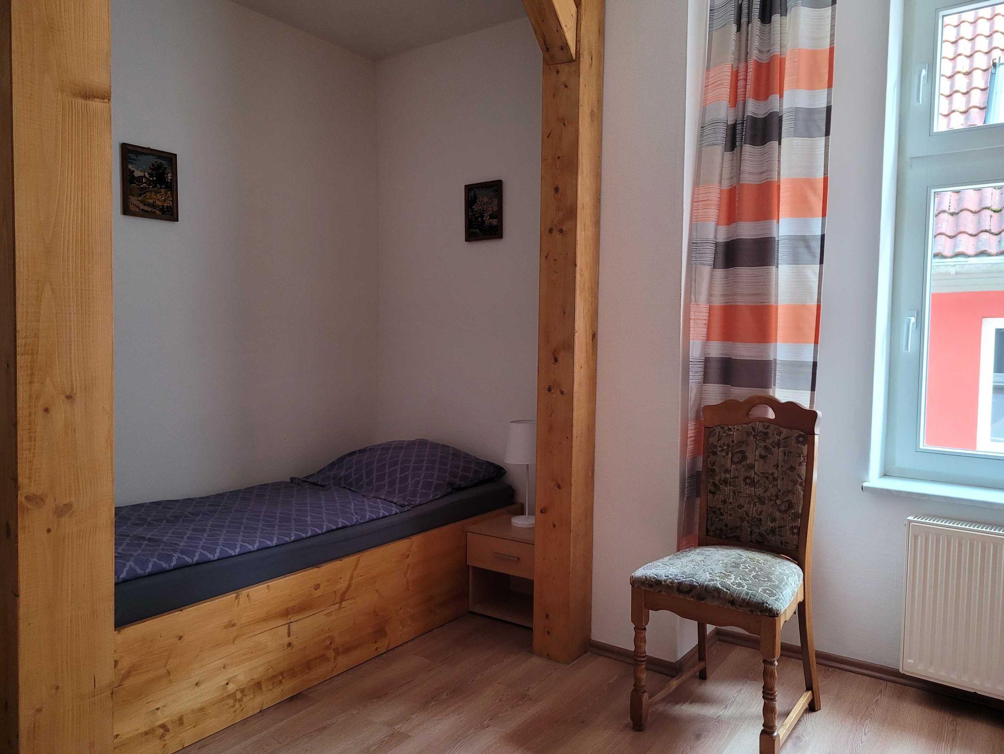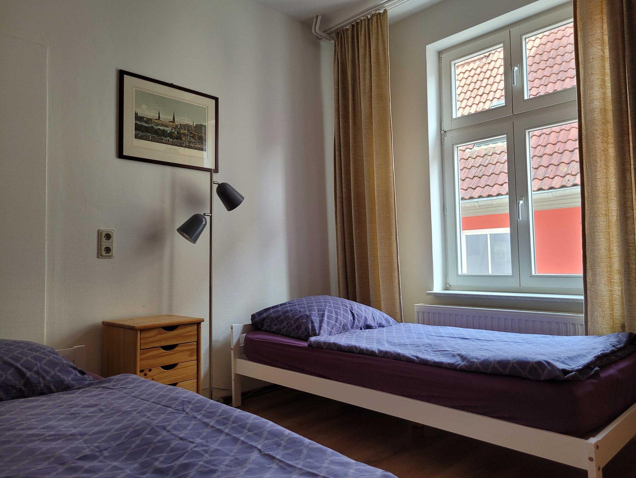 Die Ferienwohnung (105qm) für bis zu 6 Personen, befindet sich im 1.OG in der Langenstraße 33 in einem circa 150 Jahre alten denkmalgeschützten Haus. Sie verfügt über drei Schlafzimmer (je zwei Einzelbetten), Wohnzimmer mit Couchgarnitur und Esstisch, einer separaten Durchgangsküche sowie Bad mit Dusche, WC und Waschmaschine. Die Küche ist komplett ausgestattet.
