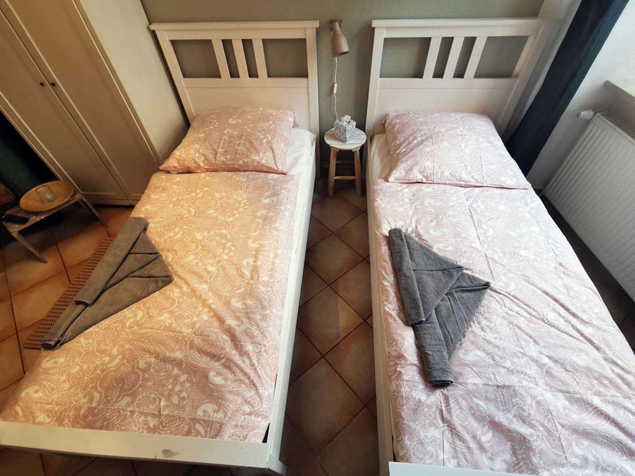 2 Einzelbetten 0,90 m x 2,00 m mit Bettwäsche