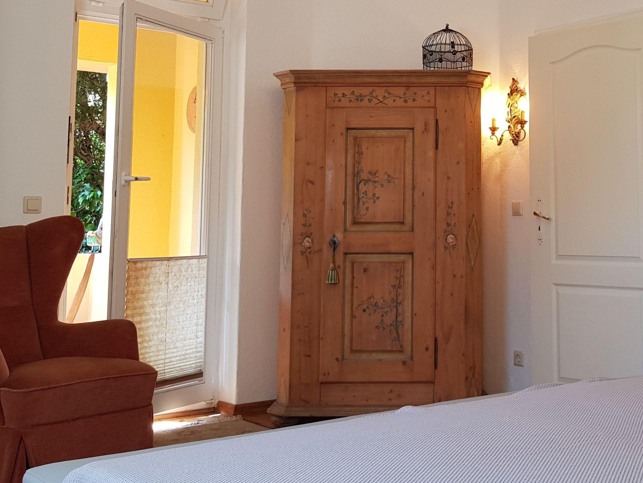 Die 110m große Wohnung (1.OG - ca. 6 Stufen) mit 3 Schlafzimmern ist ideal für einen Mehrgenerationen-Urlaub oder größere Familien. Während das 1. Schlafzimmer (Doppelbett 1,90x2,00m) über einen eigenen, kleinen Balkon verfügt, bietet das 2. Schlafzimmer (Doppelbett 1,90x2,00m) einen nostalgisch anmutenden Kamin. Das 3. Schlafzimmer ist mit einem 1,60m breiten Bett ausgestattet. Die Schlafzimmer sind mit geräumigen Kleiderschränken, für viel Stauraum, möbliert.
