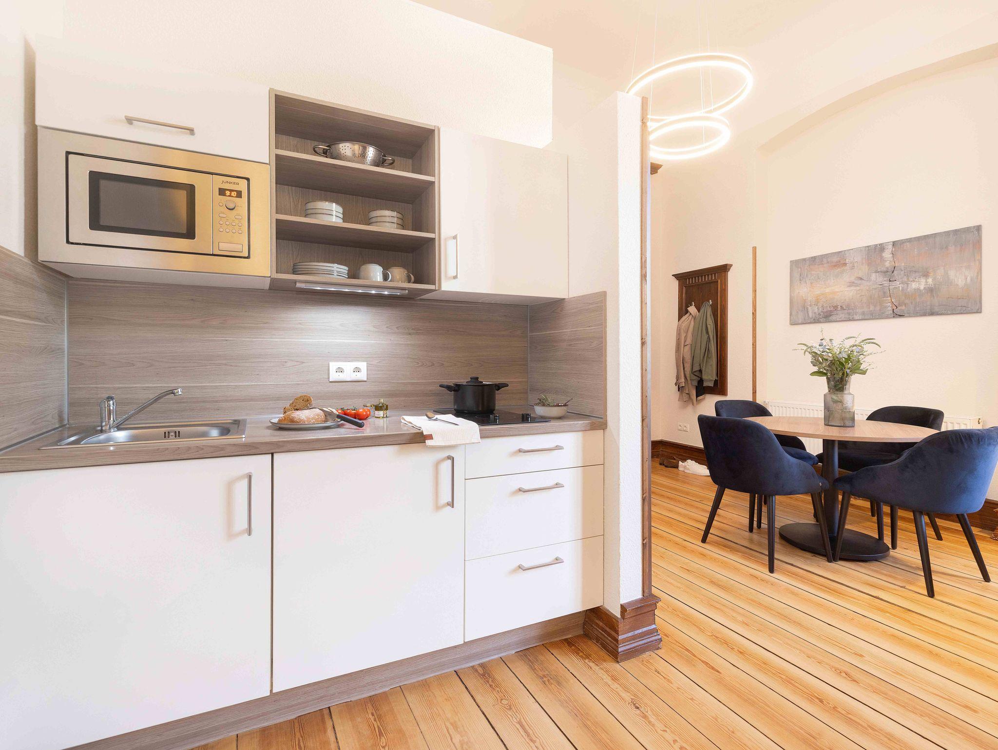 Die 16 Apartments verteilen sich auf 4 Etagen. Bitte beachten Sie, dass es aufgrund der historischen Bausstruktur keinen Fahrstuhl gibt.