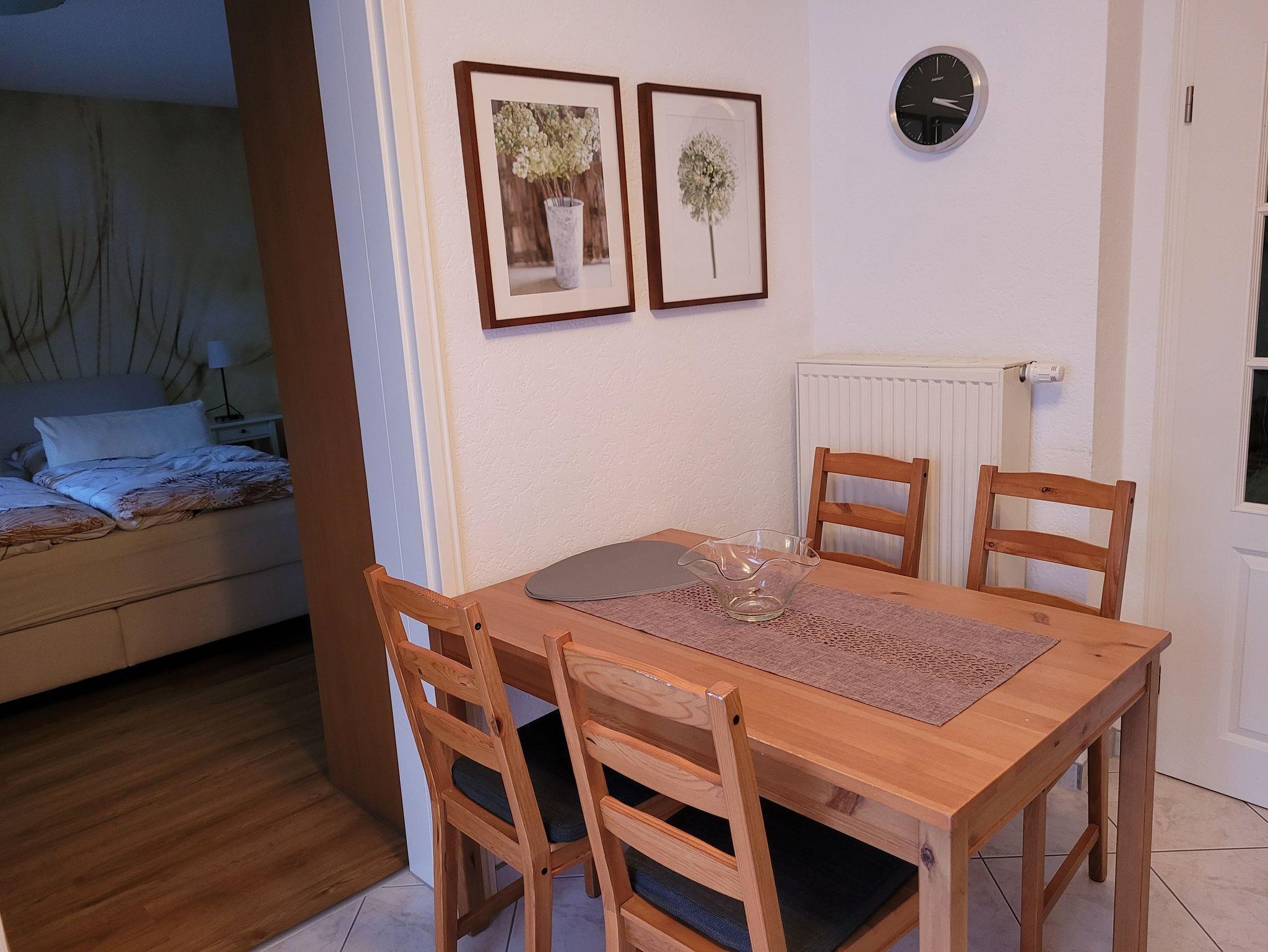 Unsere ruhig und zentral gelegene Erdgeschoss-Ferienwohnung verfügt über ein Wohnzimmer, ein separates Schlafzimmer, ein Badezimmer und einer Küche. Eine Terrasse lädt zum Verweilen ein.Ein PKW-Stellplatz steht auf dem Grundstück zur Verfügung.