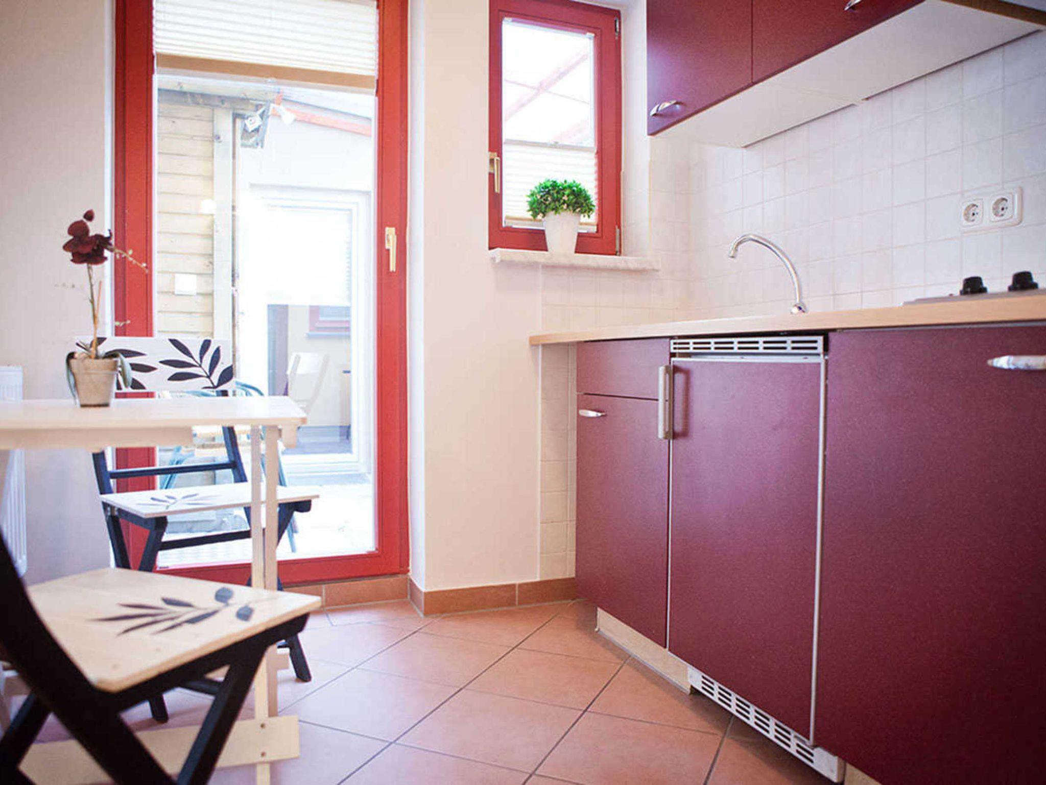 Unsere Ferienwohnung (ca. 27 m²) befindet sich in der Langenstr. 41a im Erdgeschoss und ist über 2 Stufen erreichbar. Sie verfügt über einen kombinierten Wohn-/ Schlafraum, mit kl. Couch und offener Küche. Das Bad ist gefliest, mit Dusche und Fenster. Die kleine Terrasse ist über die Küche erreichbar und wird mit einer weiteren Ferienwohnung geteilt. Von dort aus haben sie einen schönen Blick zum Hafen und dem Ozeaneum Stralsund.