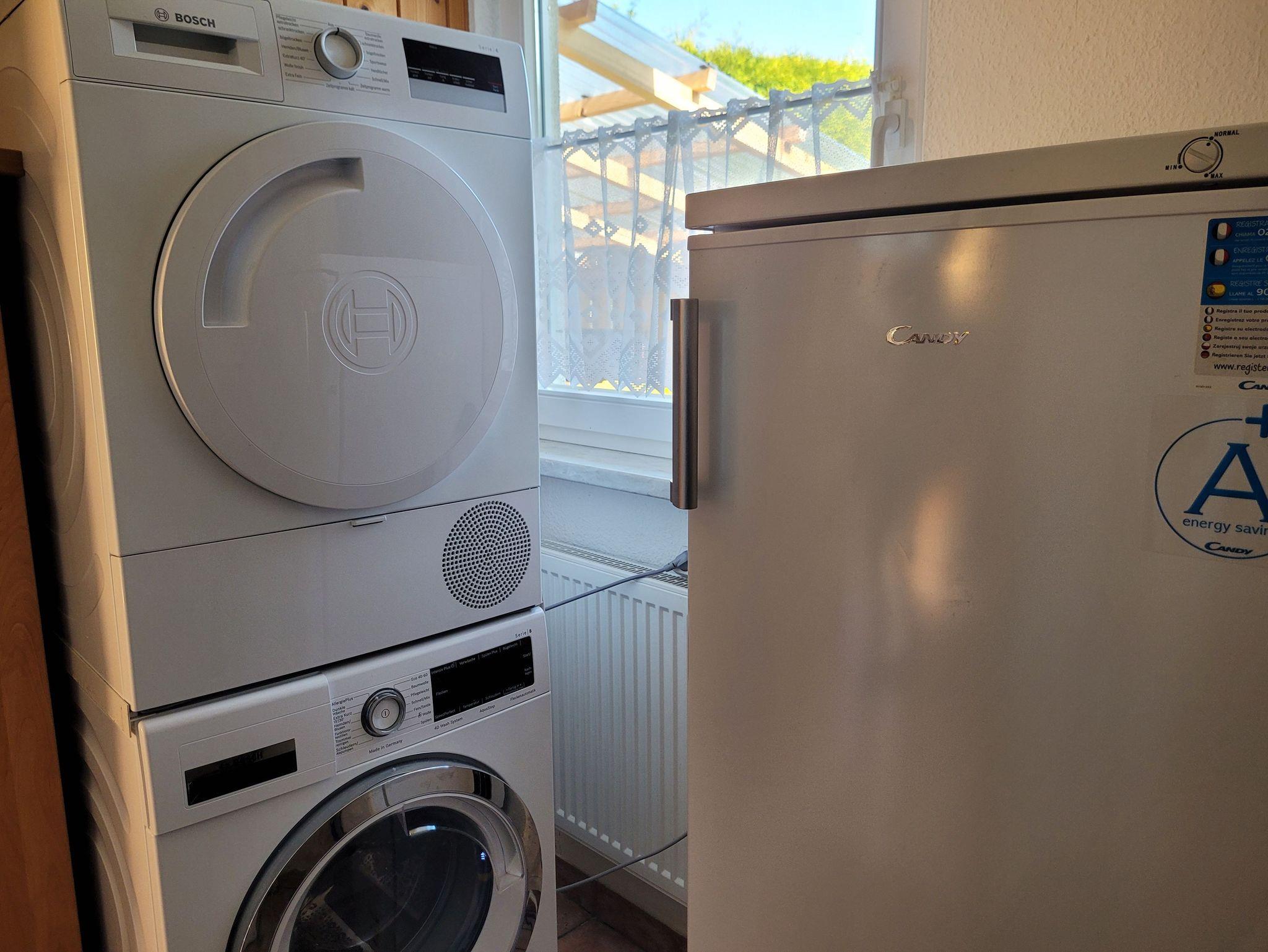 Im Hauswirtschaftsraum steht Ihnen eine Waschmaschine, ein Trockner und ein Gefrierschrank zur Verfügung.