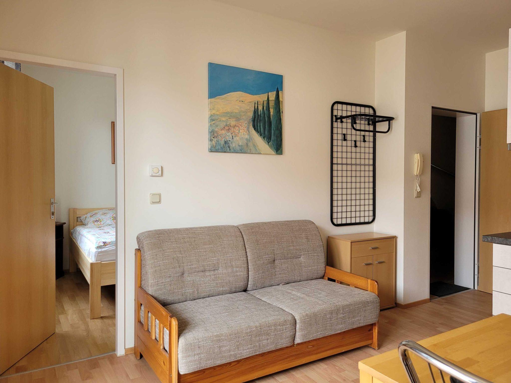 Die Wohnung verfügt über ein Schlafzimmer mit Doppelbett, ein Wohnzimmer, Wohnküche, Bad mit Dusche/WC und ein Balkon in Süd-West-Lage.