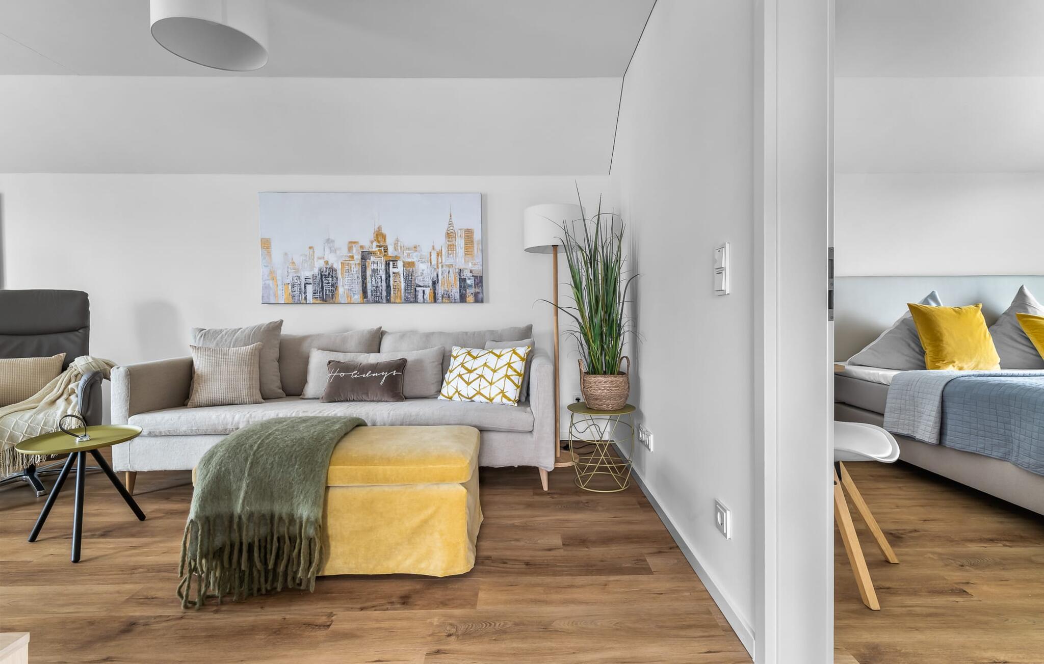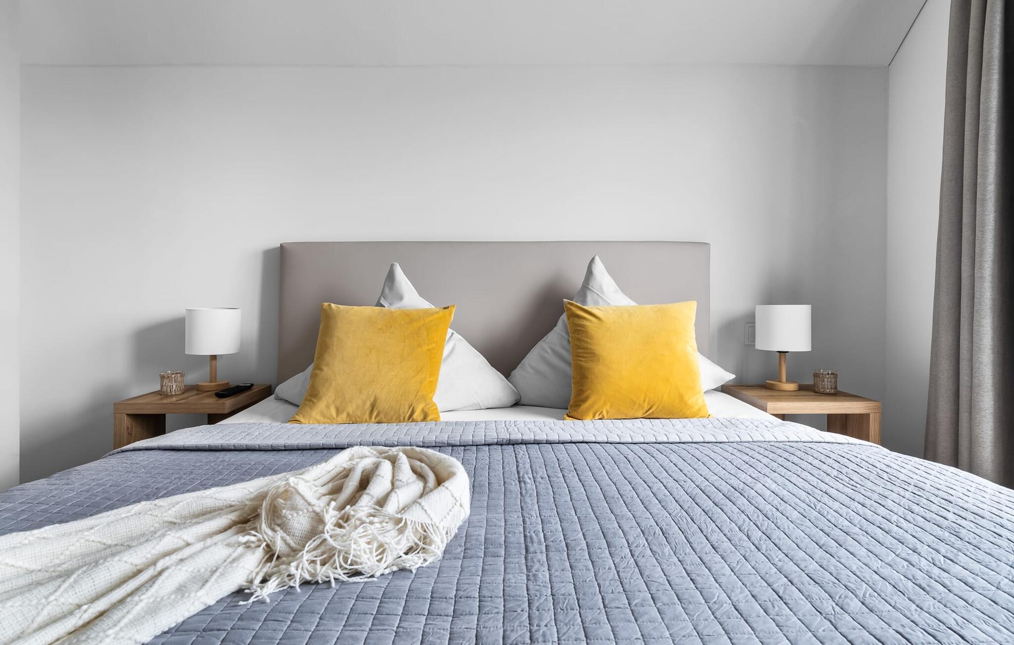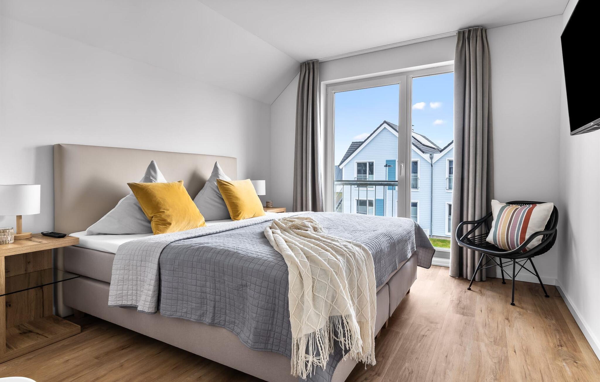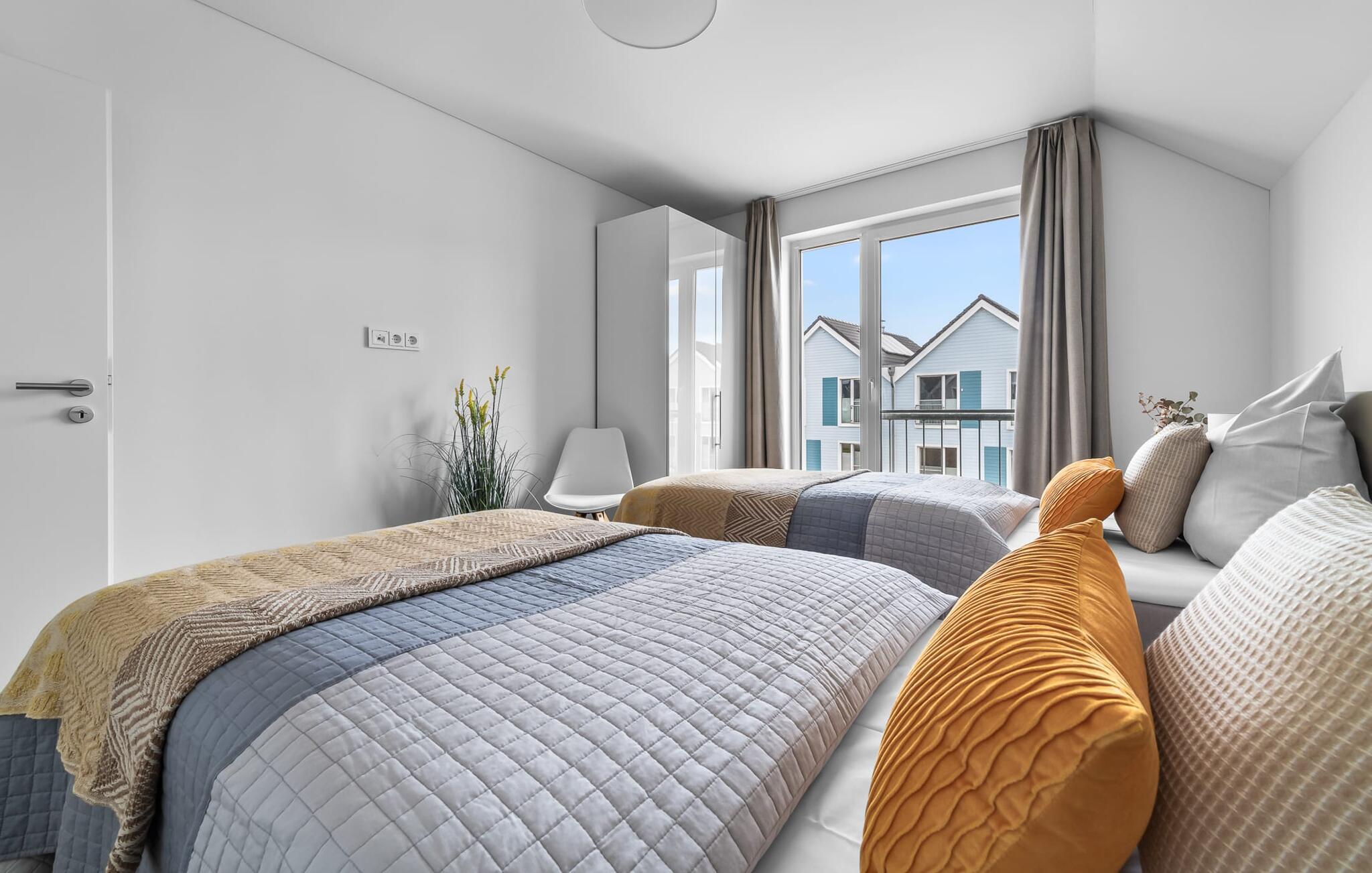 Für erholsamen Schlaf stehen euch zwei Schlafzimmer zur Verfügung. Das erste Schlafzimmer verfügt über ein komfortables Doppelboxspringbett sowie einen eigenen Fernseher. Im zweiten Schlafzimmer findet ihr zwei Einzelboxspringbetten. Alle Zimmer können dank Plissees und Vorhängen komplett abgedunkelt werden.
