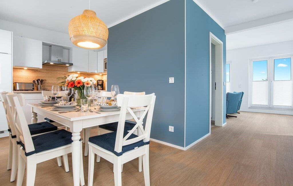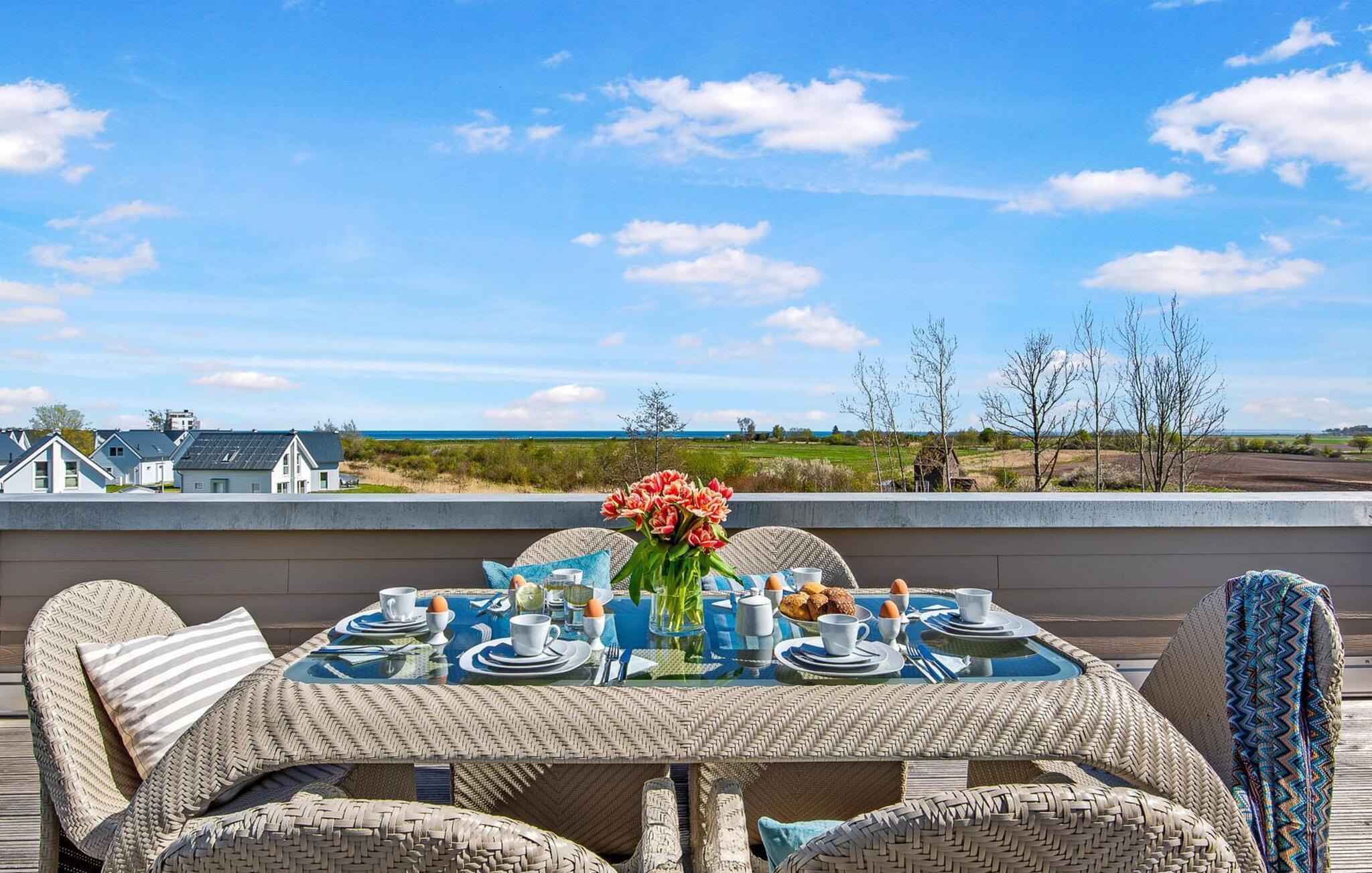 Direkt vom Wohnbereich aus betretet ihr die große Terrasse mit Süd-West-Ausrichtung. Nach hinten ausgerichtet mit Blick auf die Naturschutz-Salzwiesen, die Ostsee, Felder und gen Meer sind gemütliche Stunden vorprogrammiert.