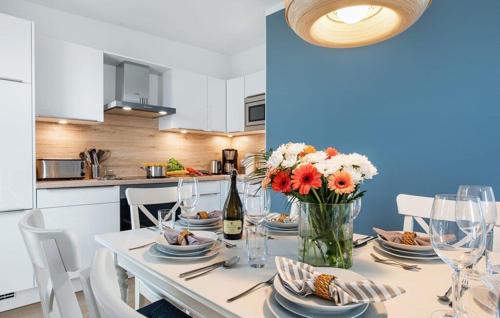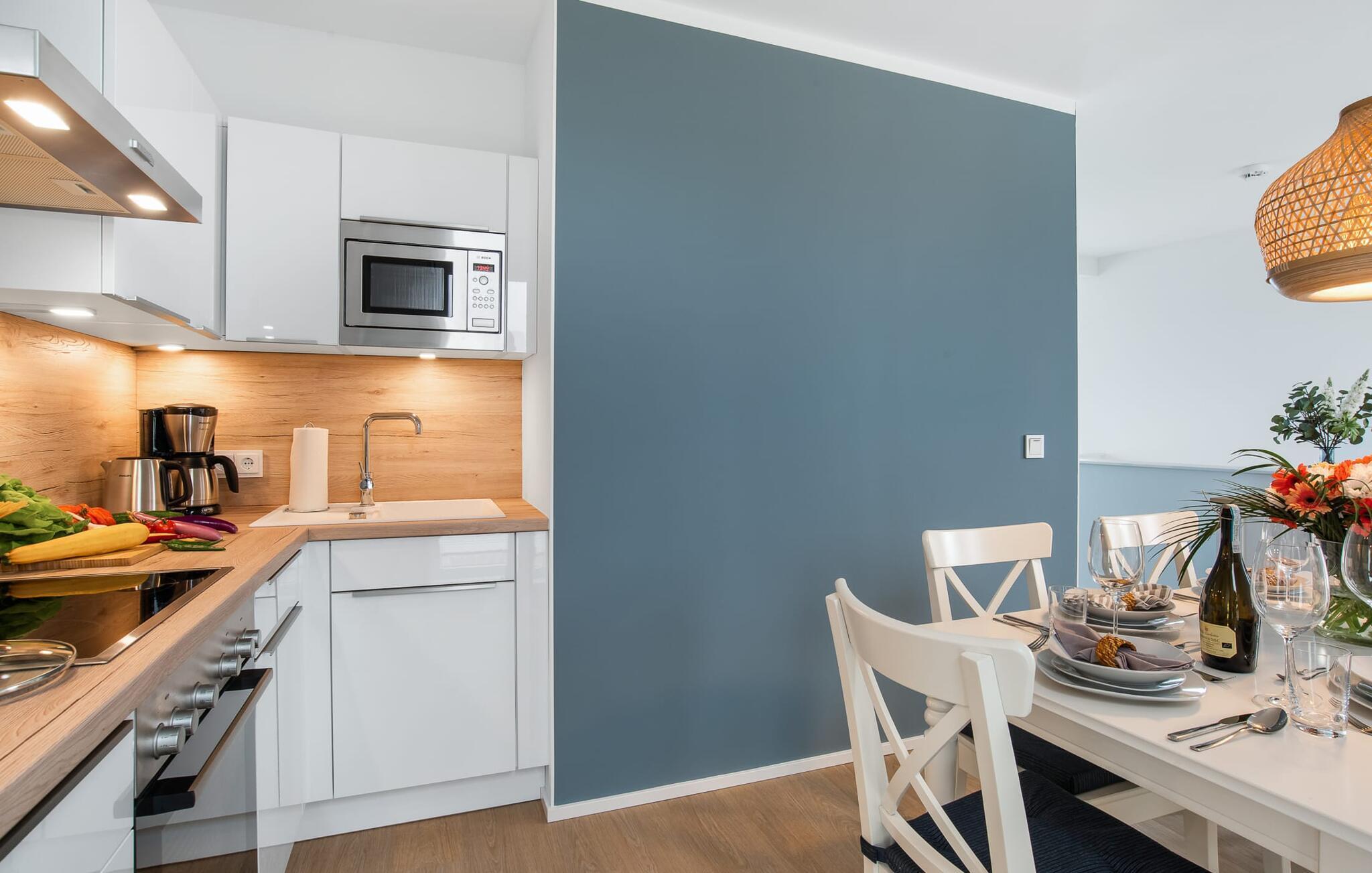 Die integrierte Küche ist perfekt ausgestattet und gemeinsames Kochen macht viel Spaß. Die fertigen Leckereien dann auf der ebenfalls hochwertig ausgestatteten Terrasse genießen oder einen geselligen Grillabend einläuten… Das ist Urlaub pur.