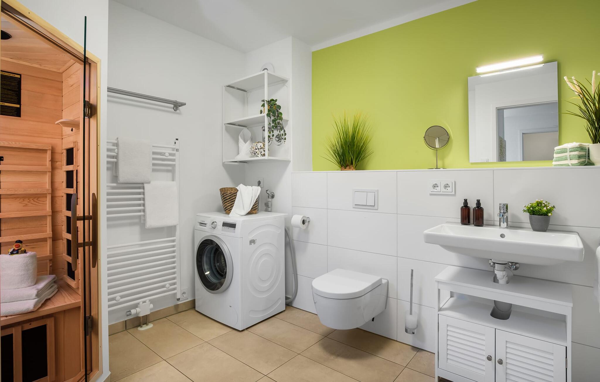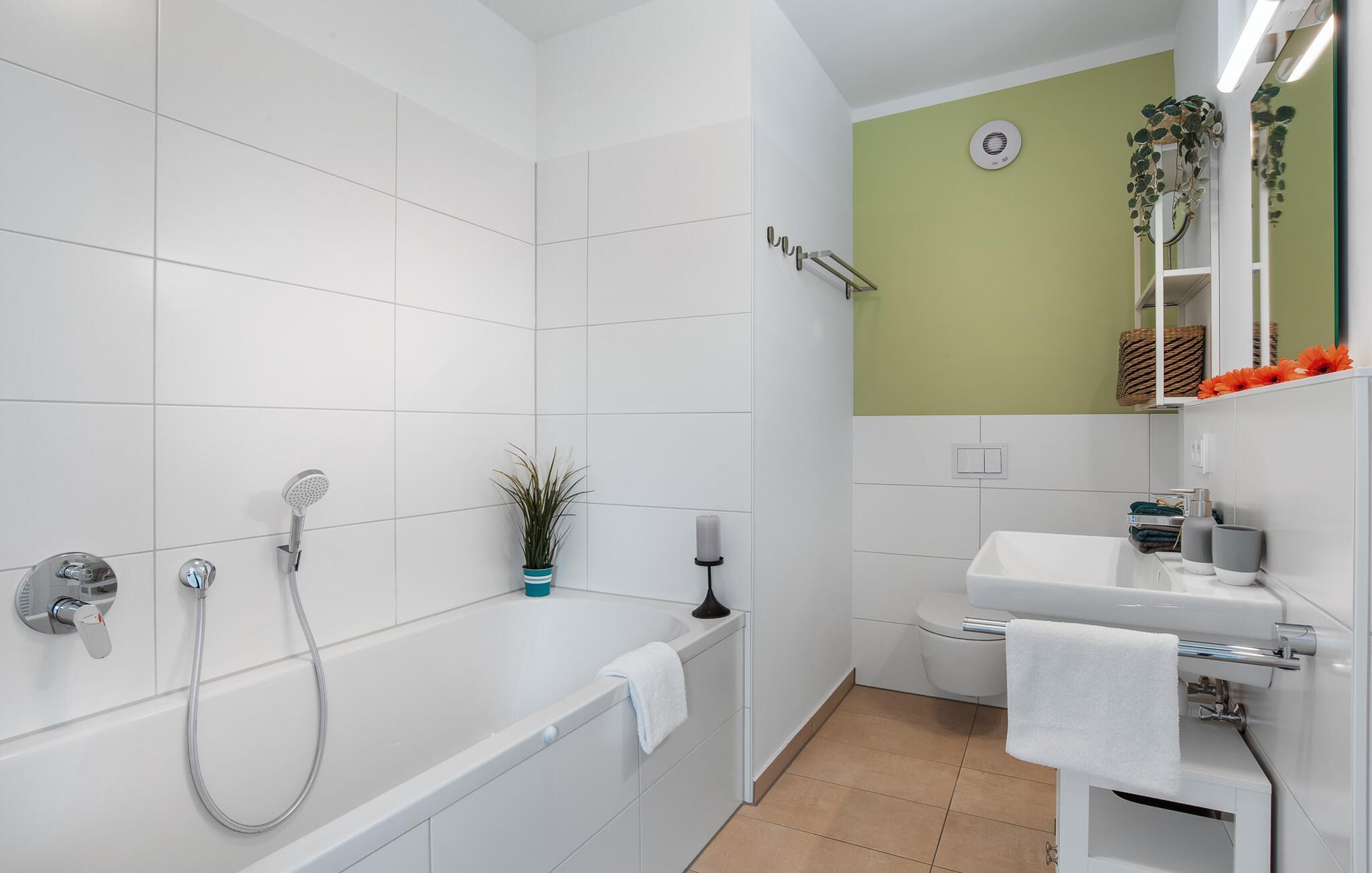 Ein zweites Vollbad mit Dusch-Badewanne rundet das Komplettpaket für einen erholsamen Urlaub ideal ab.