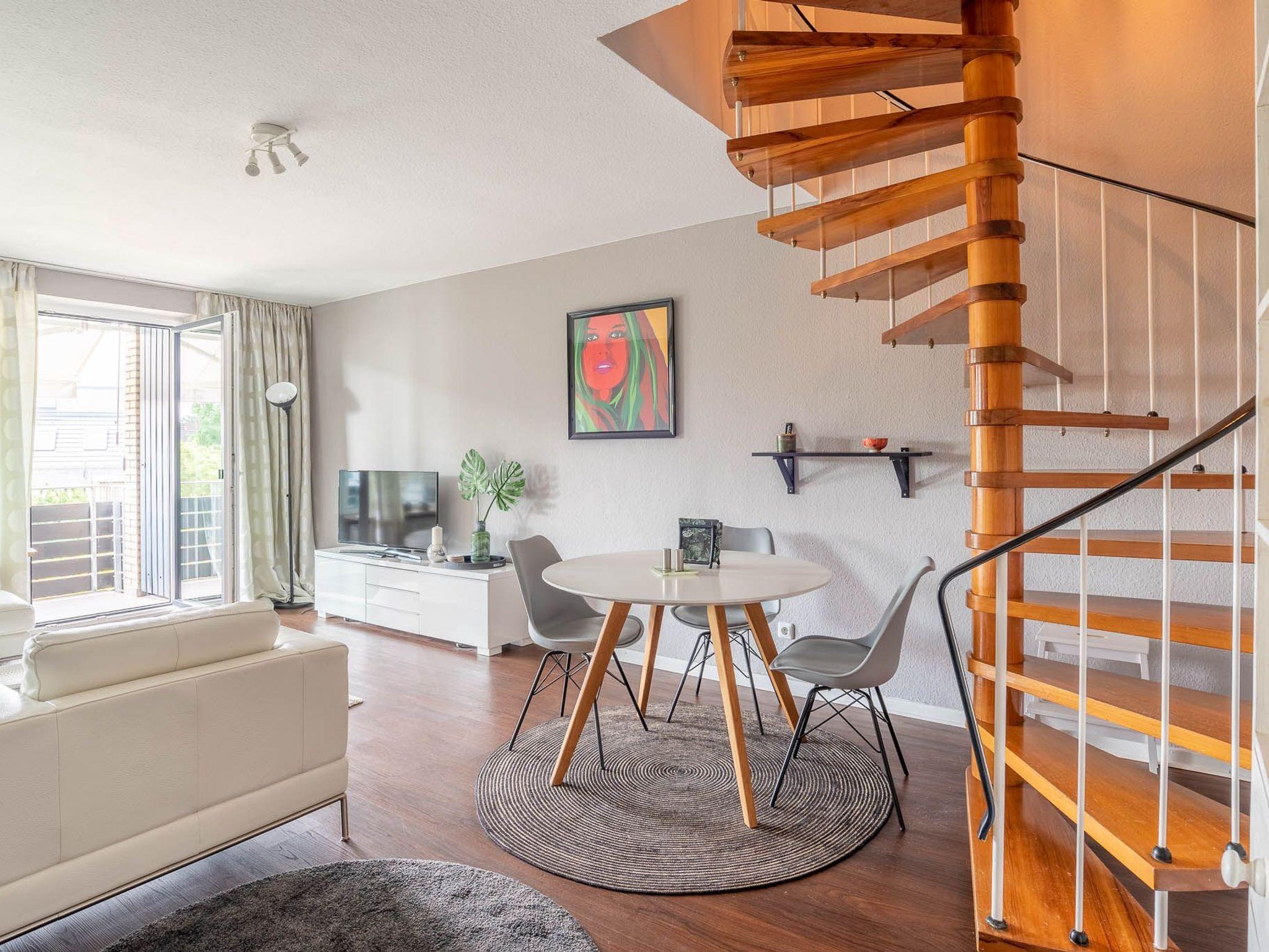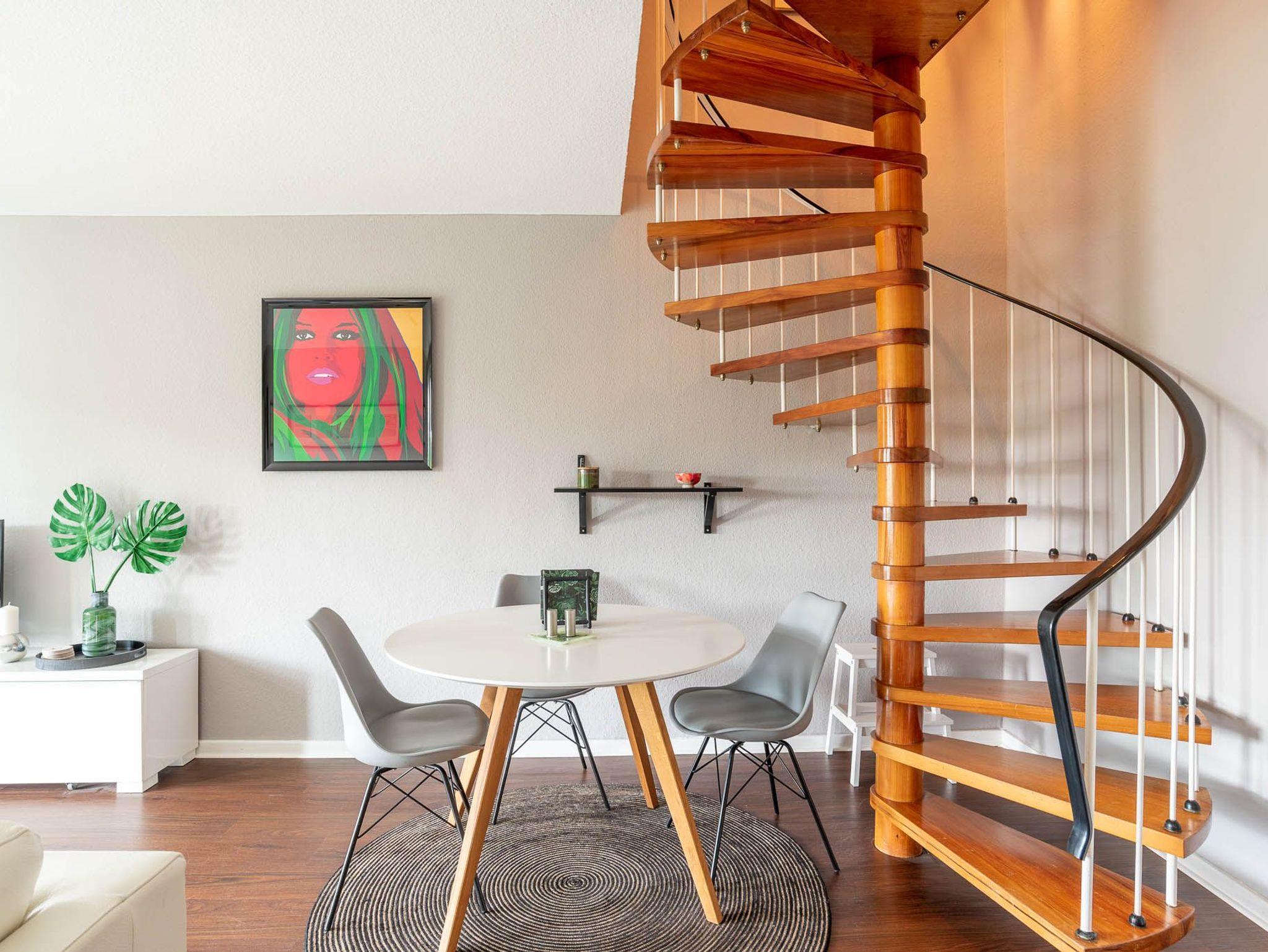Der Name Beach Side macht der Wohnung alle Ehre. Die Unterkunft liegt in direkter Lage zum Sandstrand und zur Promenade von dem Ostseebad Strande. Der Eingang befindet sich im 1. Obergeschoss in einer kleinen Hausanlage. Die Ferienwohnung ist mit einer offenen Wendeltreppe auf zwei Geschosse aufgeteilt.