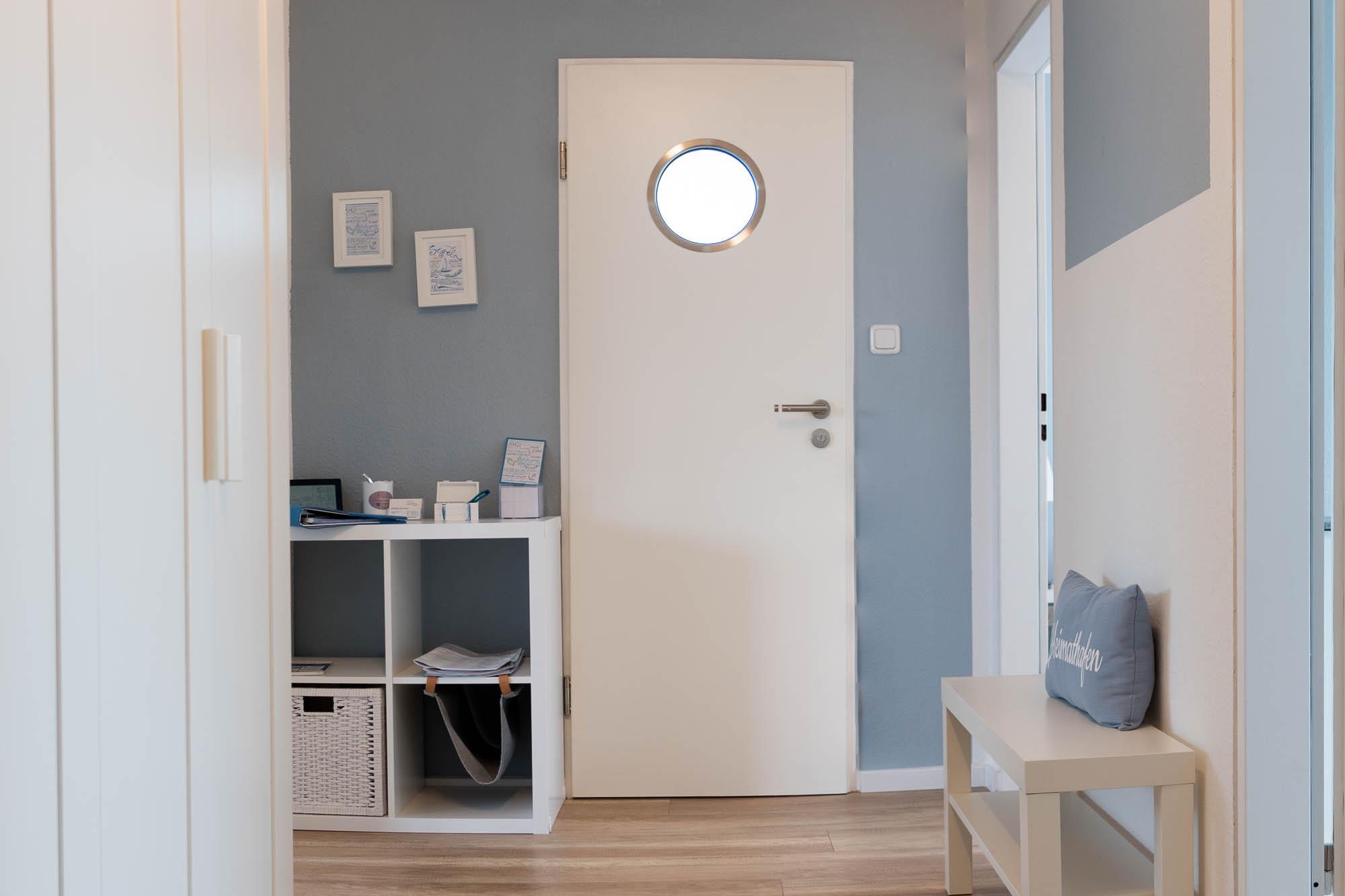 Im Flurbereich befindet sich die Garderobe, der Kleiderschrank und der Haushaltsschrank mit diversen Haushaltsutensilien. Für Ihre Sicherheit ist ein Feuerlöscher und ein Erste Hilfe Kasten vor Ort.
