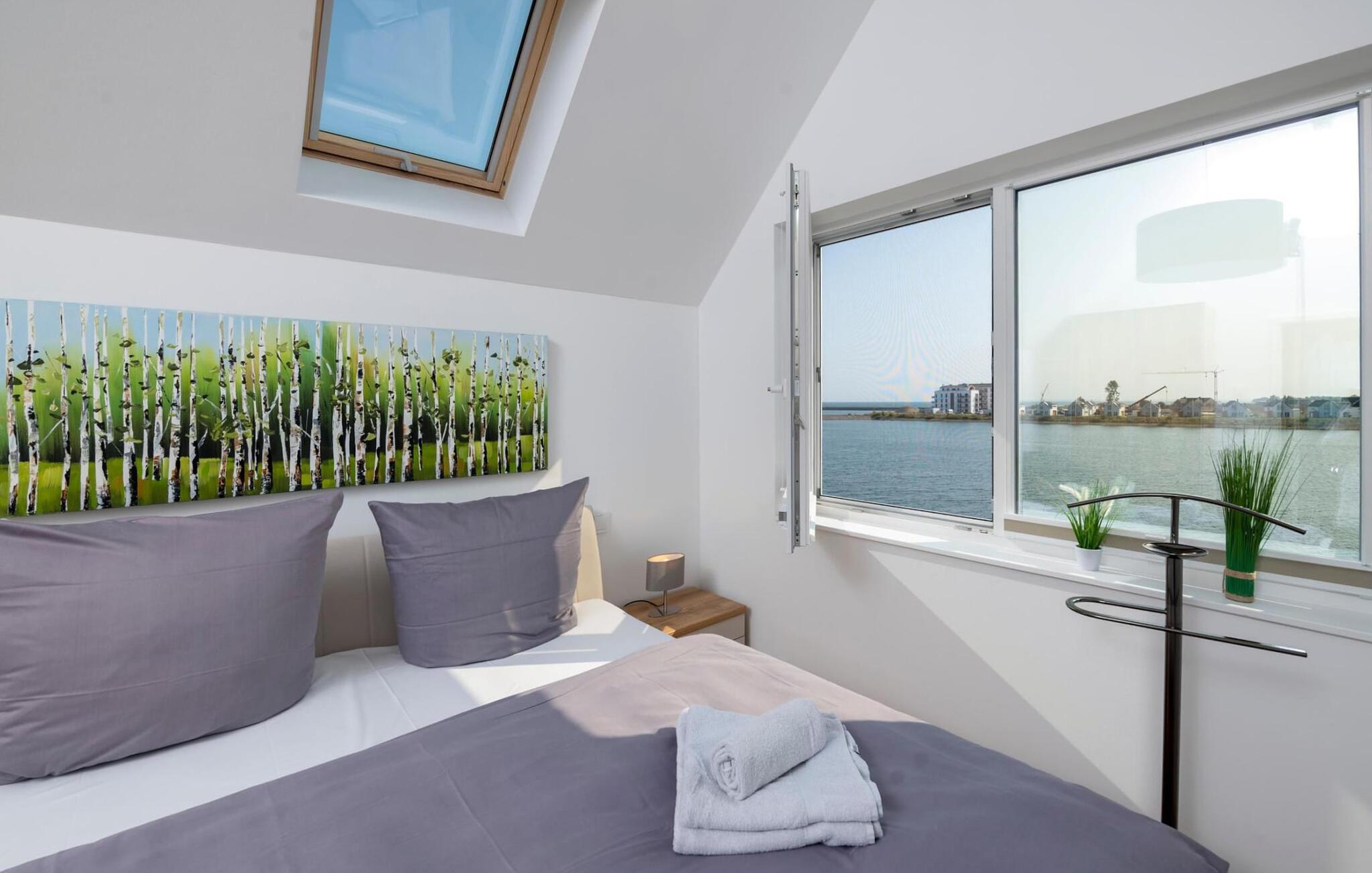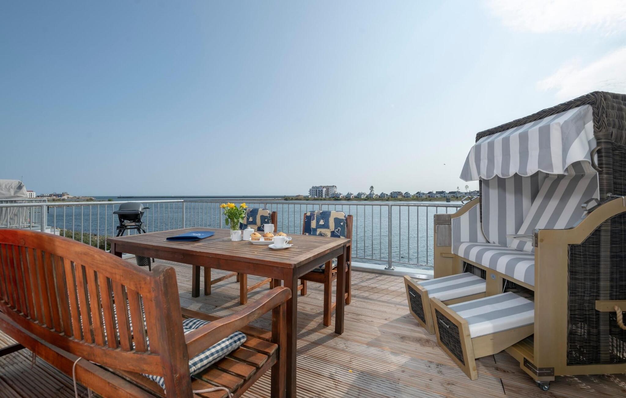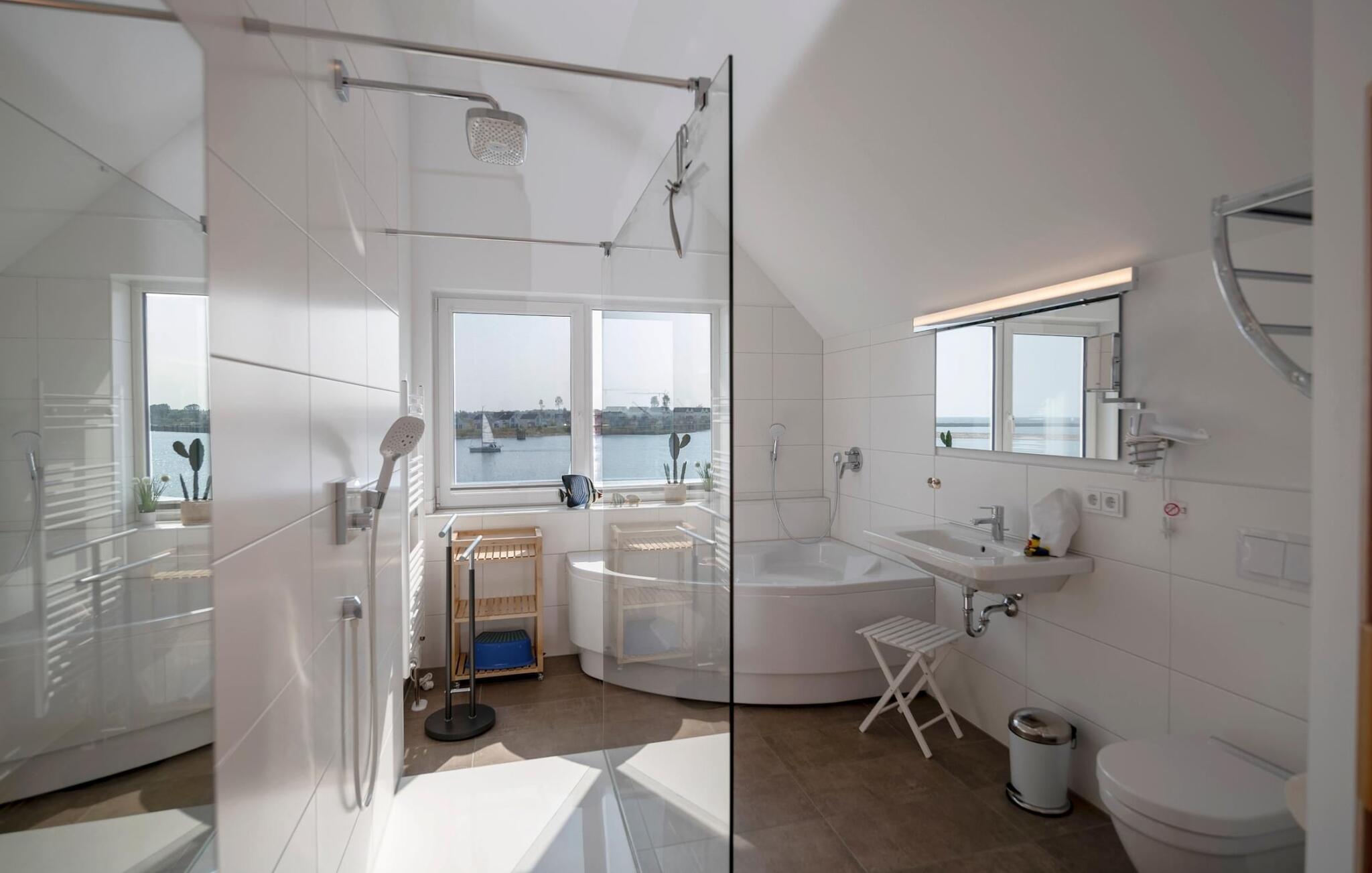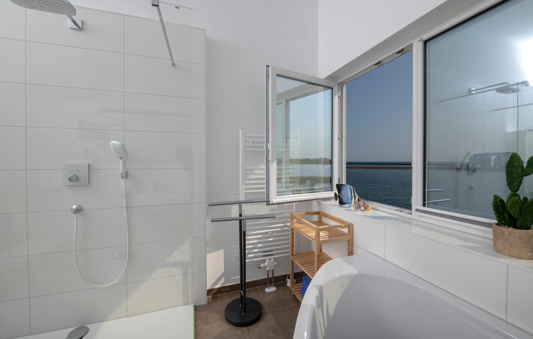 Moderne Maisonettewohnung mit Meerblick, privatem Wellnessbereich und Terrasse am OstseeResort Olpenitz, ideal für erholsame Tage am Wasser.