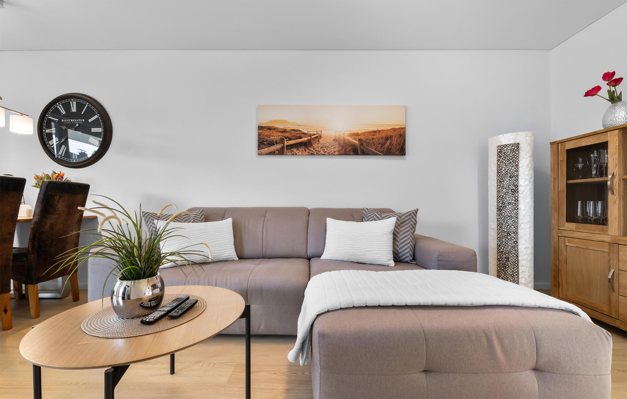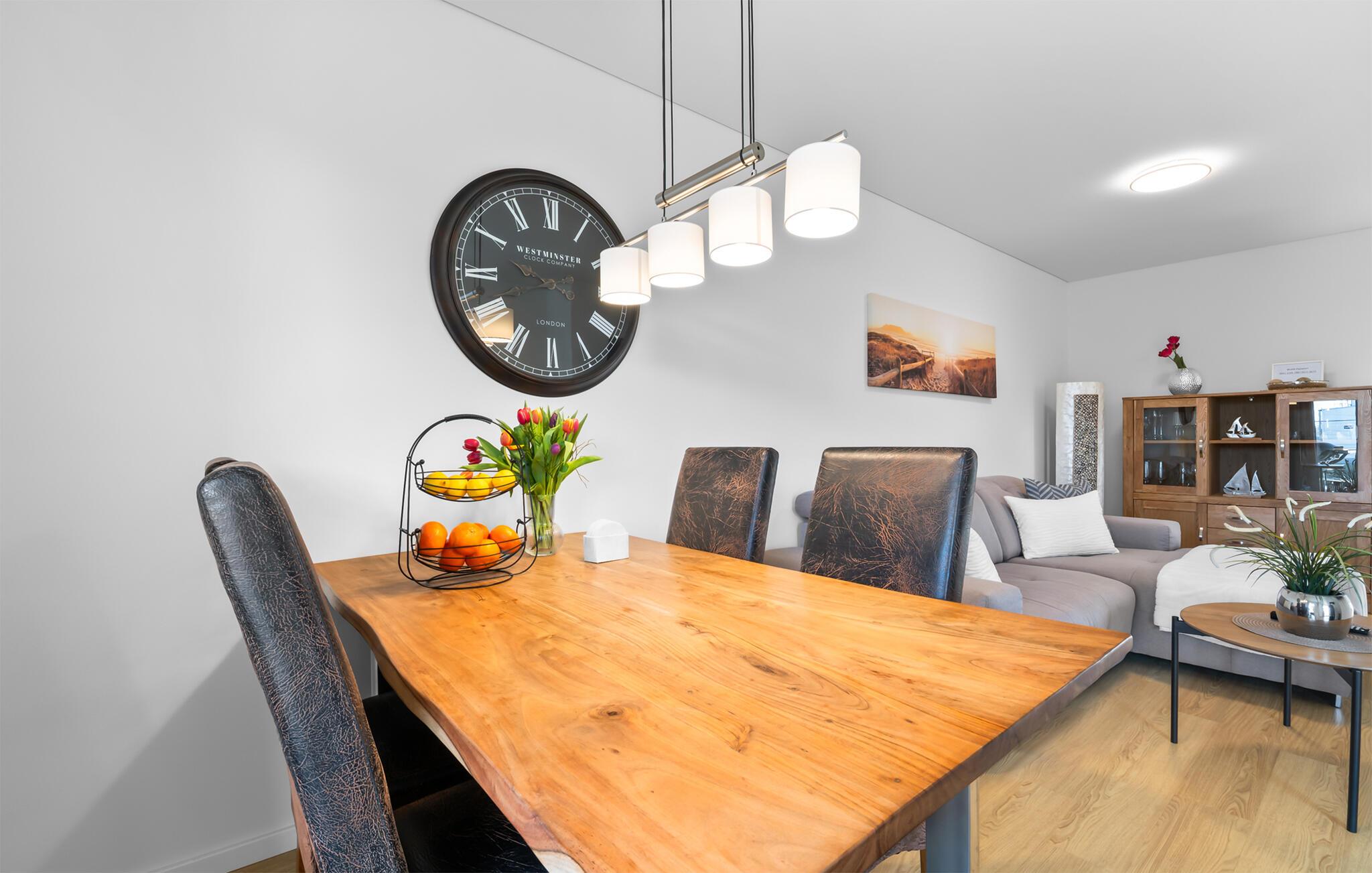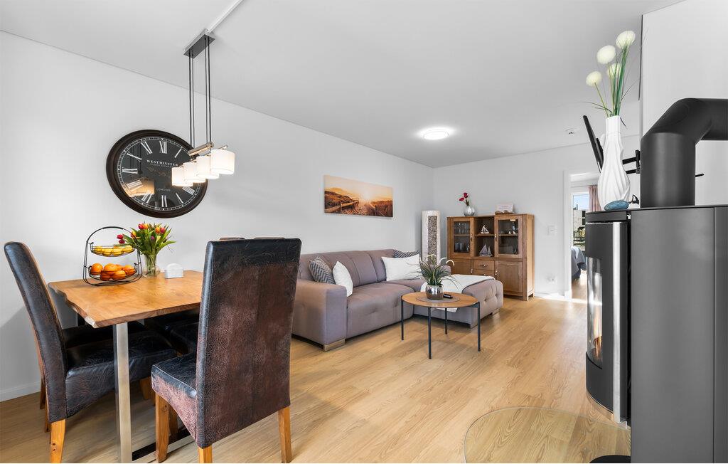 Die moderne Einrichtung und die hochwertige Ausstattung lassen keine Wünsche offen und versprechen höchsten Komfort. Entspannt euch und nutzt das kostenlose W-LAN oder gönnt euch gemütliche Abende vor dem Smart-TV (beides ab Sommer 2024) und/oder dem Kaminofen im Wohnzimmer. Wenn ihr zusätzliche Schlafmöglichkeiten benötigt, steht euch ein komfortables Schlafsofa zur Verfügung.
