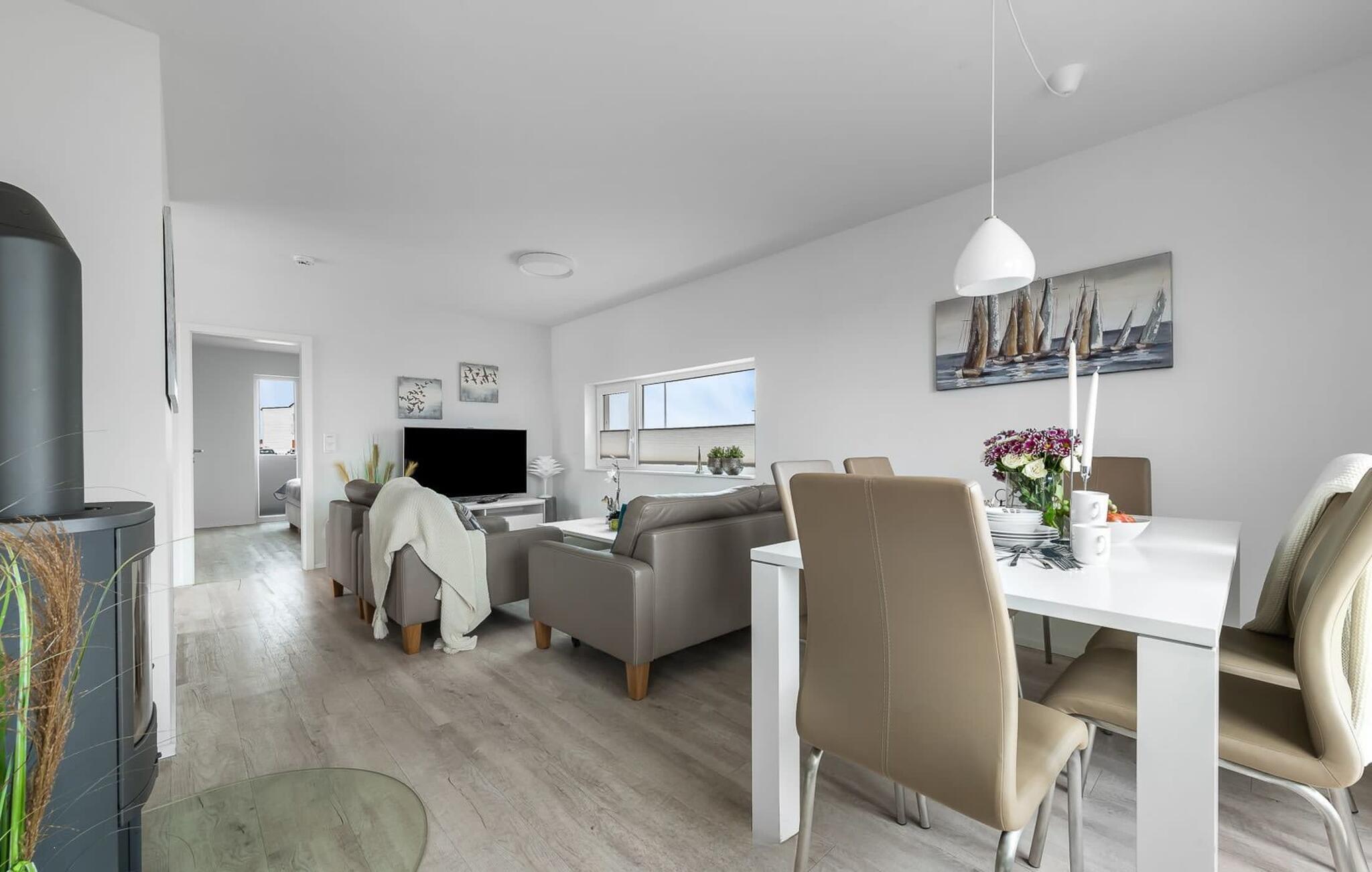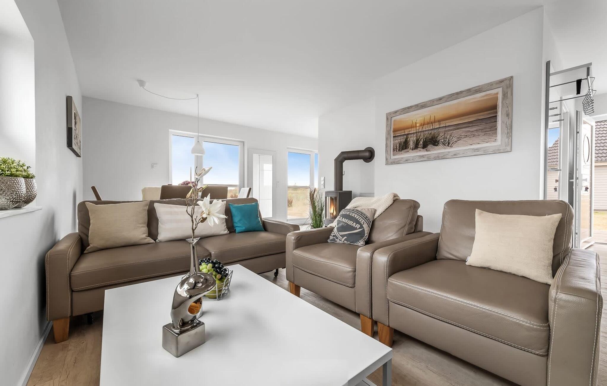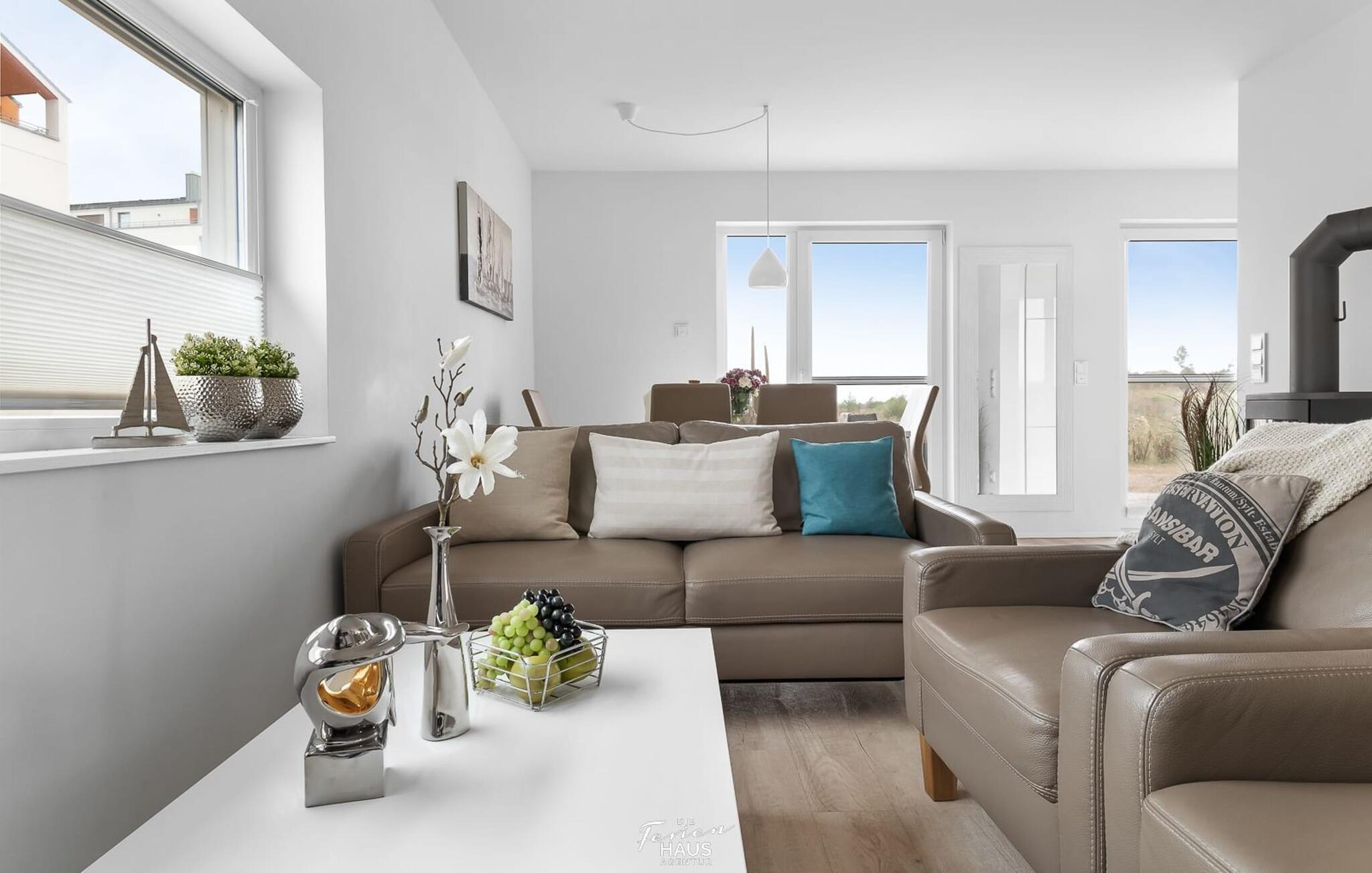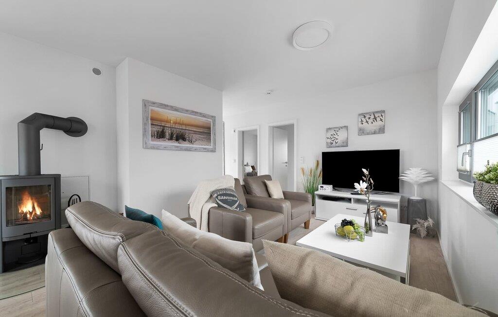 Romantisch wird es vorm Kaminfeuer auf dem kuscheligen Sofa. Für Indoor Unterhaltung sorgen an nordischen Schietwetter-Tagen zudem WLAN und Smart TV mit Telekom Home Entertainment Programm.