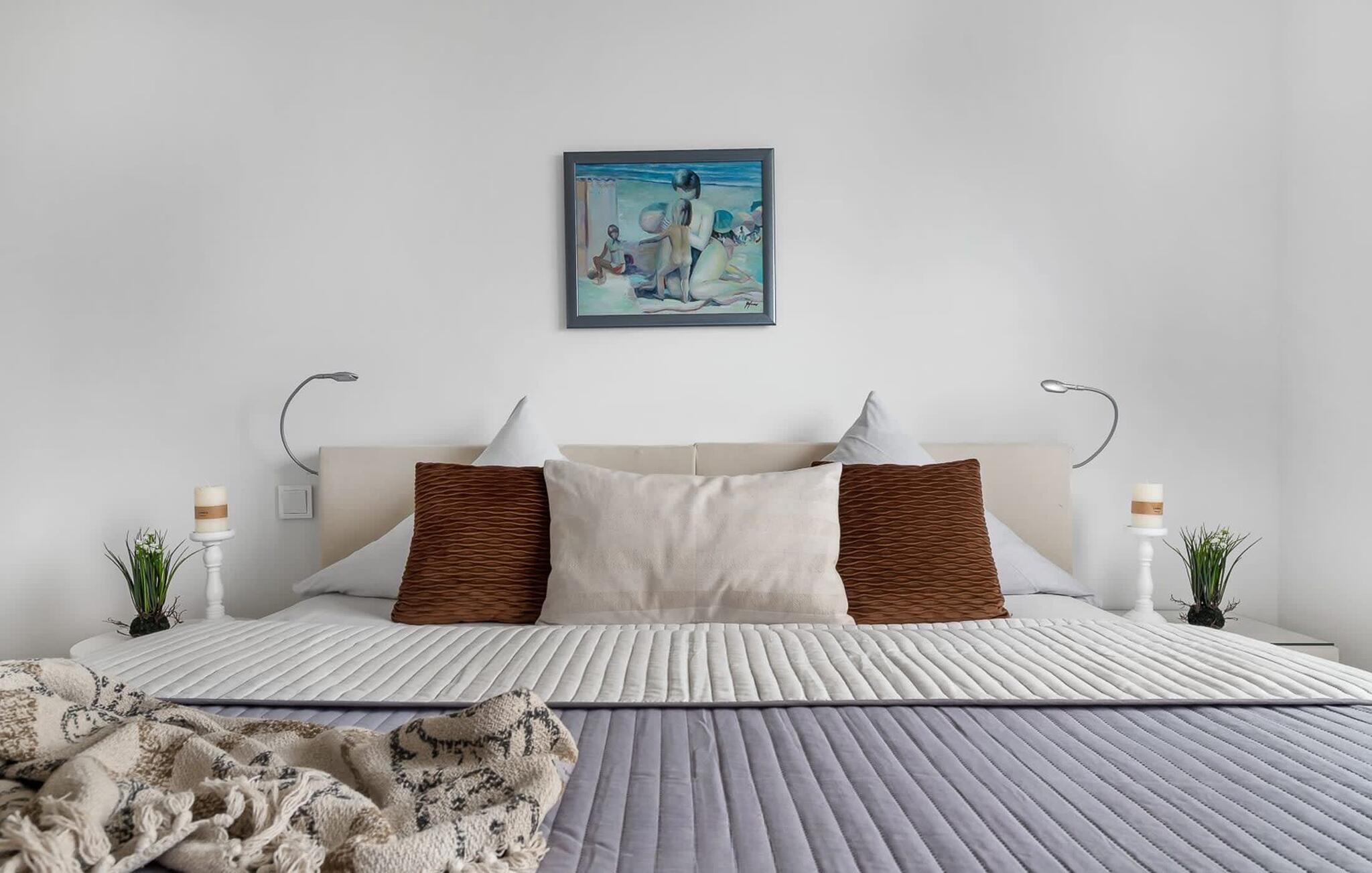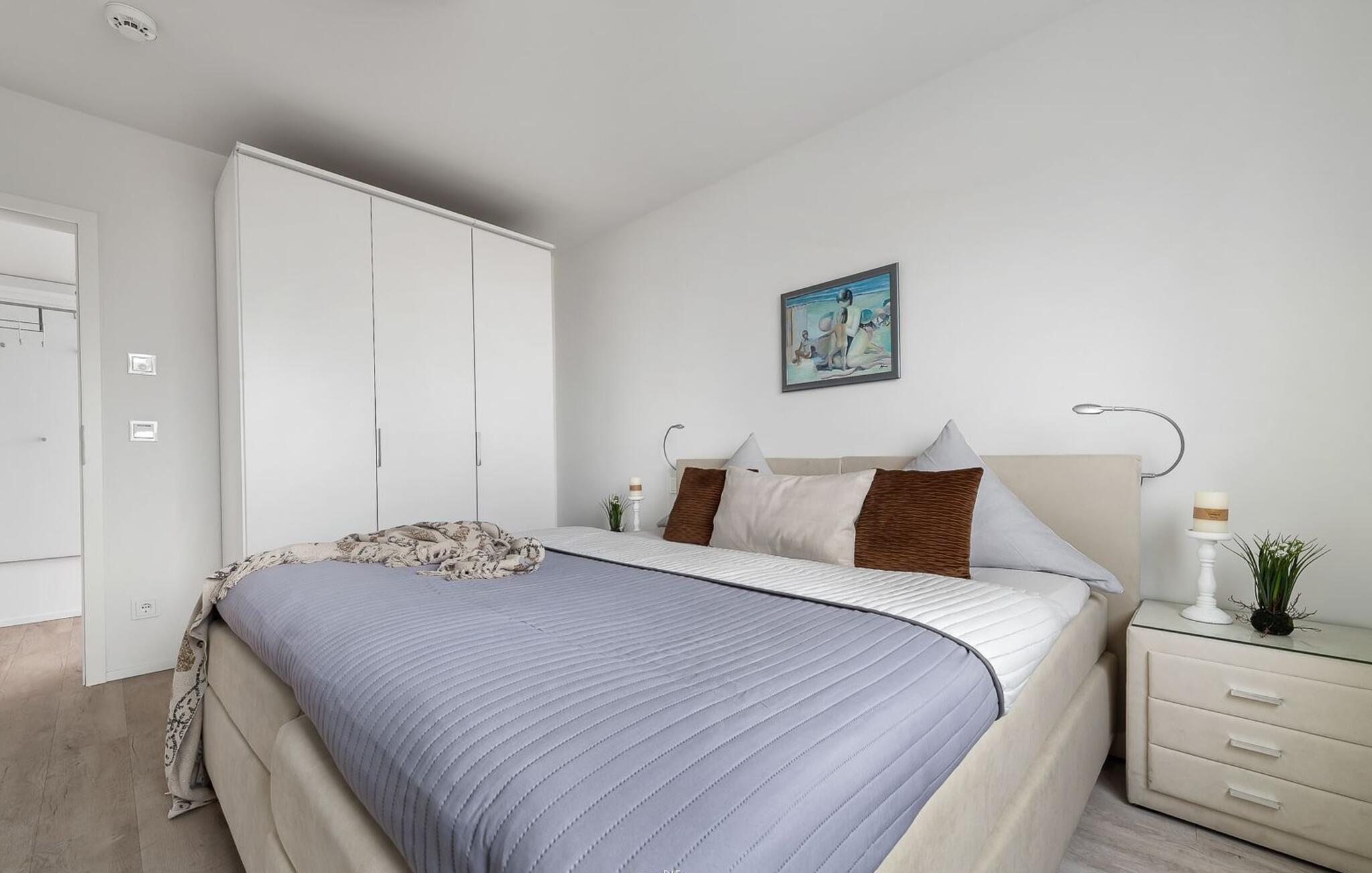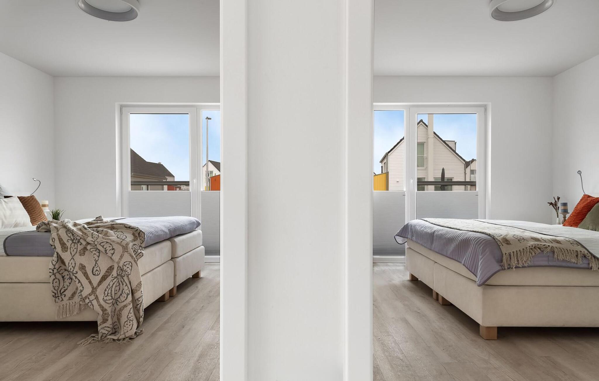 Für die Nachtruhe stehen zwei Schlafzimmer bereit. Beide Schlafzimmer sind mit je einem großen Doppelboxspringbett ausgestattet.