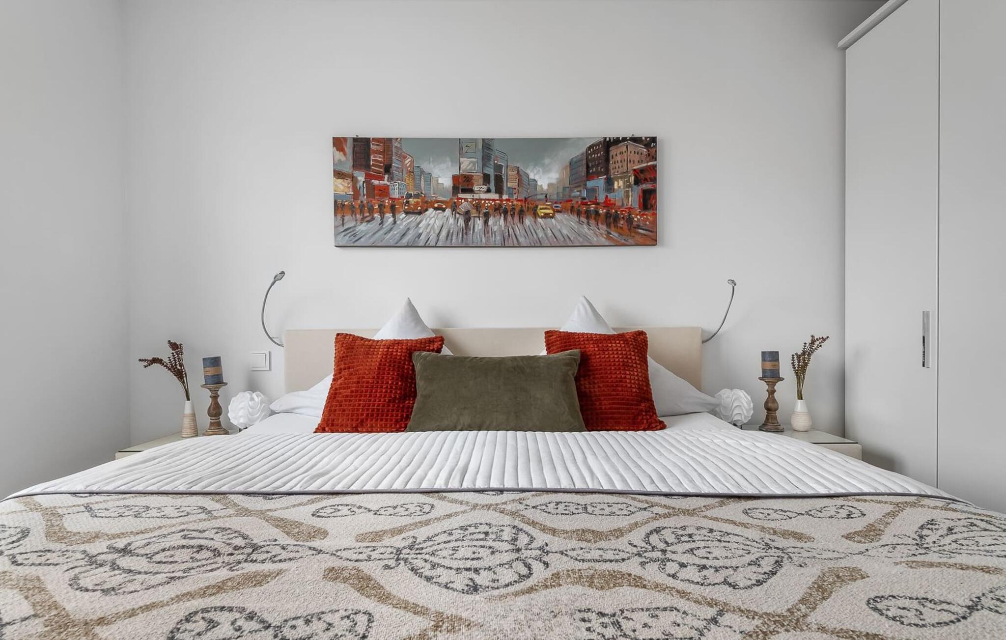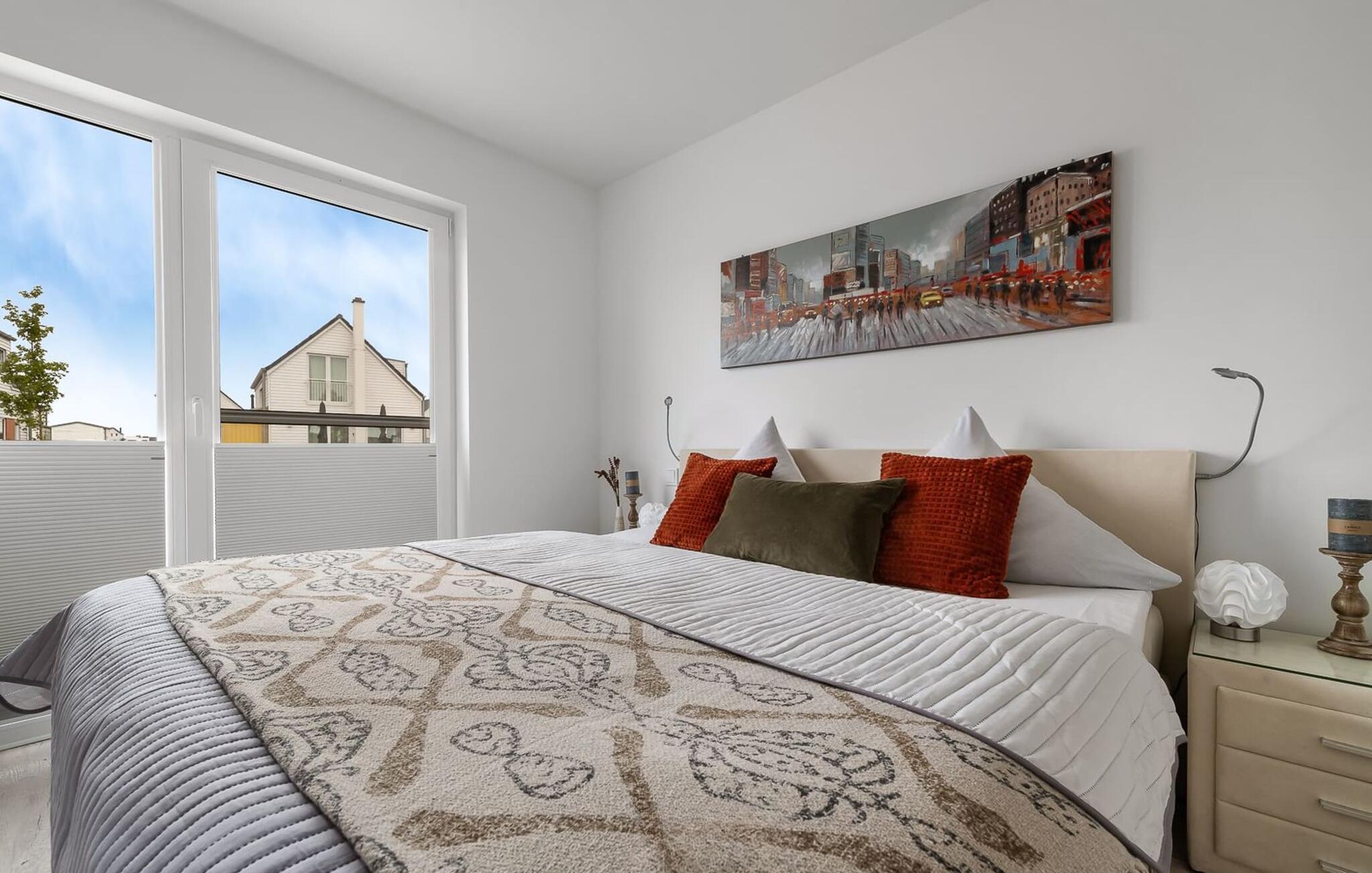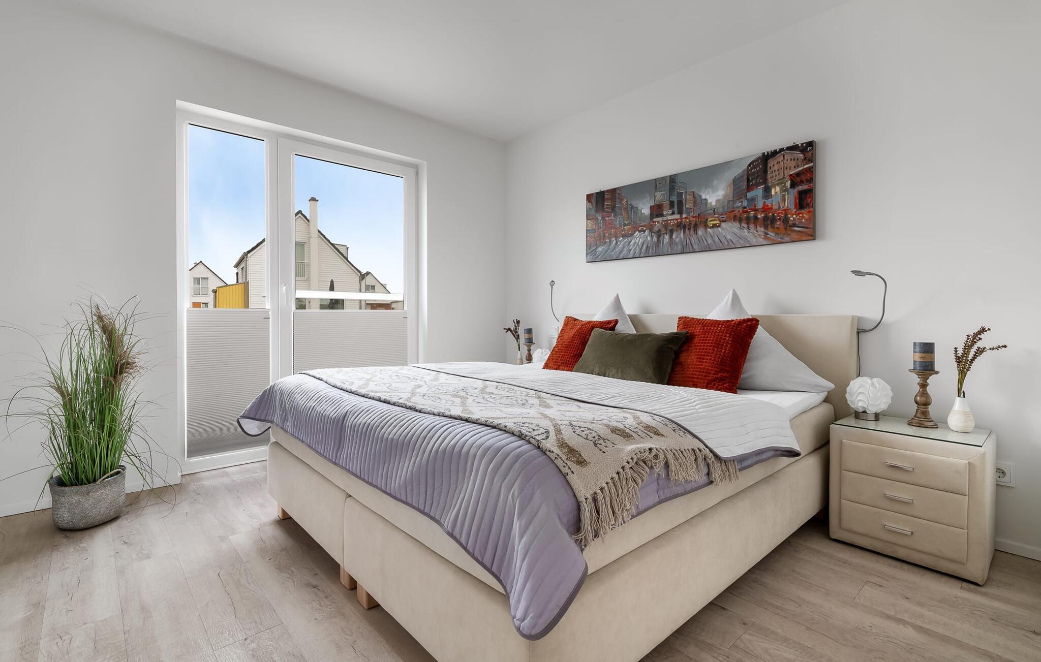Für die Nachtruhe stehen zwei Schlafzimmer bereit. Beide Schlafzimmer sind mit je einem großen Doppelboxspringbett ausgestattet.