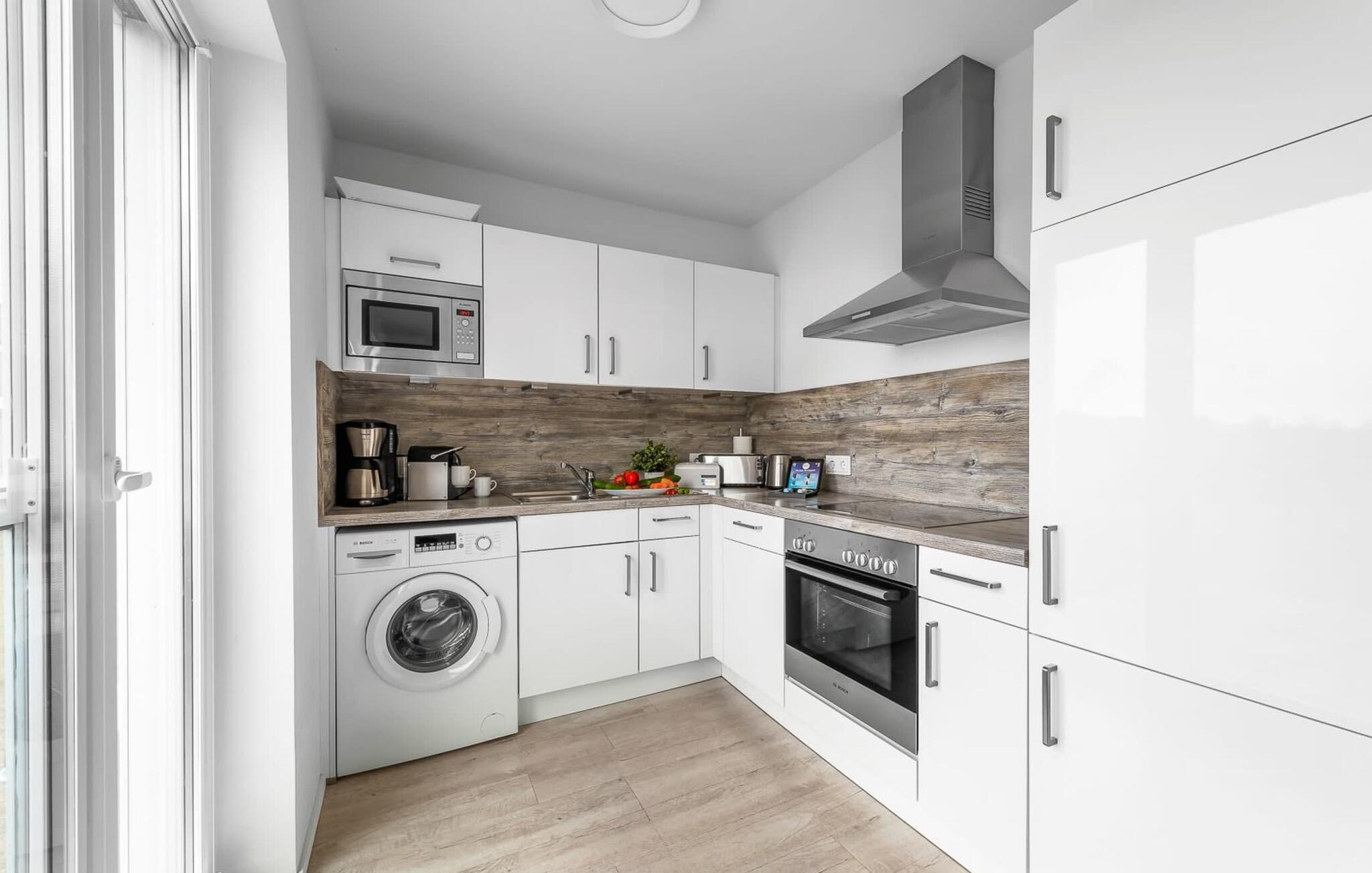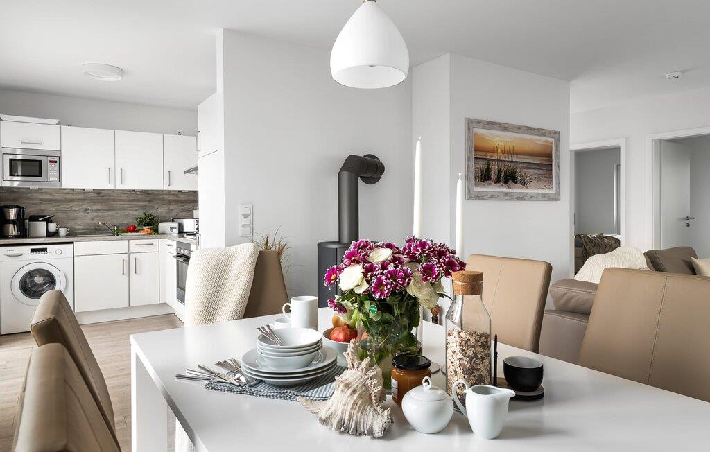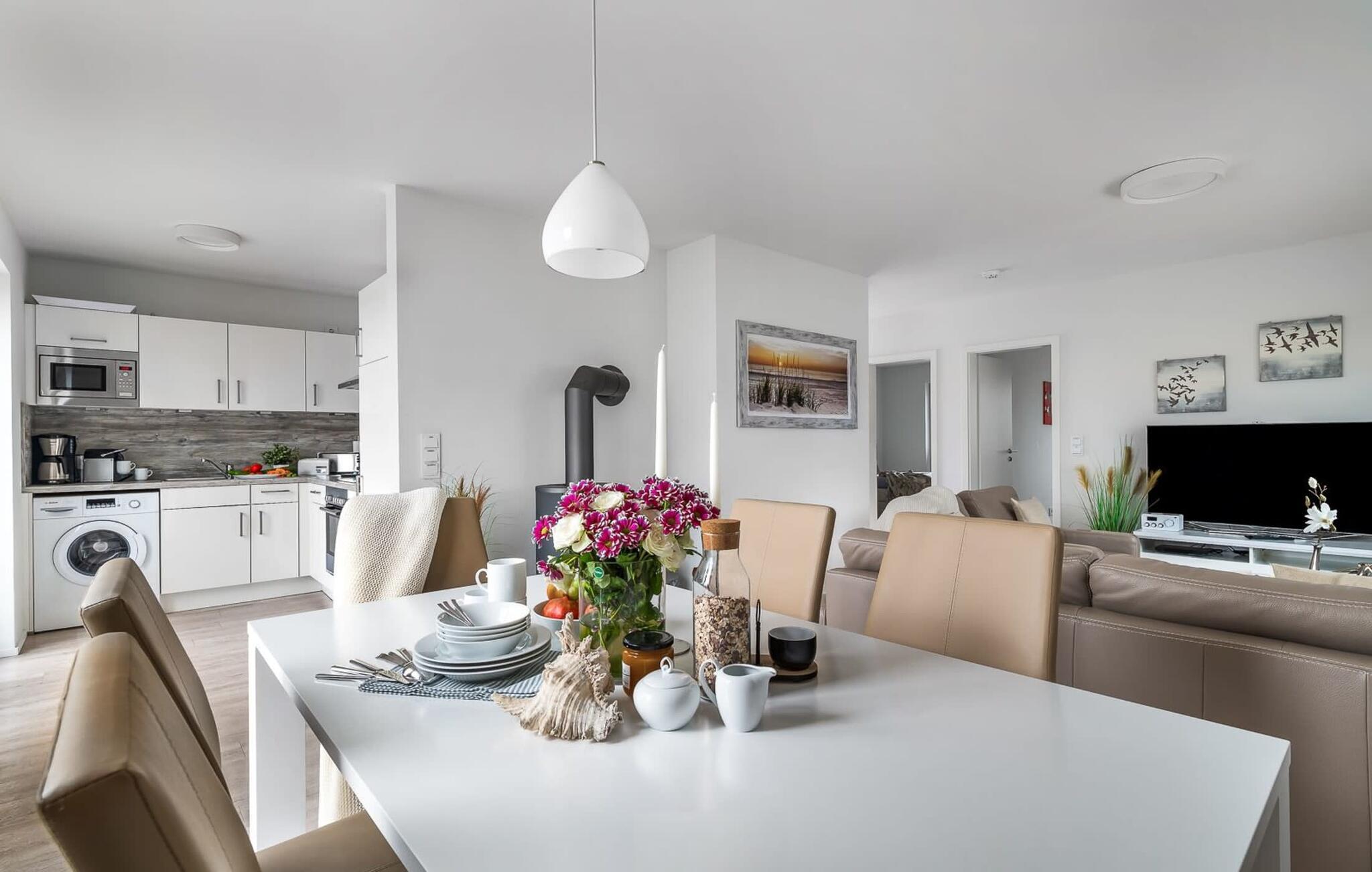 Im Urlaub ist Zeit für kreatives Kochen, die rundum ausgestattete Wohnküche lässt hierbei keine Wünsche offen. Die direkt an den Essbereich angrenzende Terrasse verspricht gesellige Grillabende.