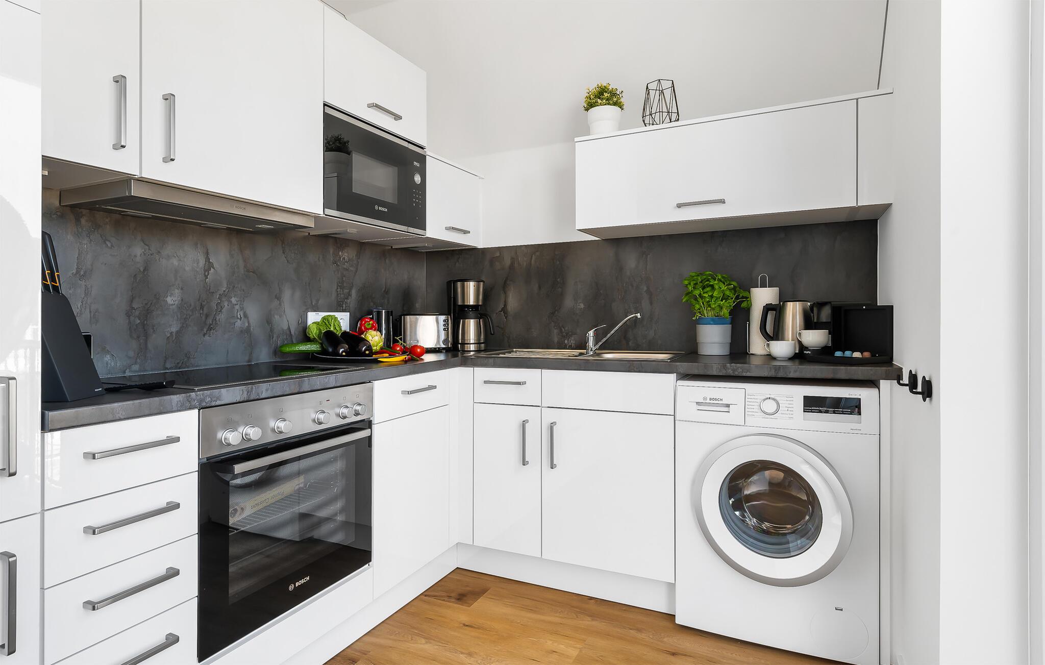 Die offene Küche ist vollständig ausgestattet und lässt keine Wünsche offen. Hier könnt ihr euch kulinarisch austoben und eure Lieblingsgerichte zaubern.