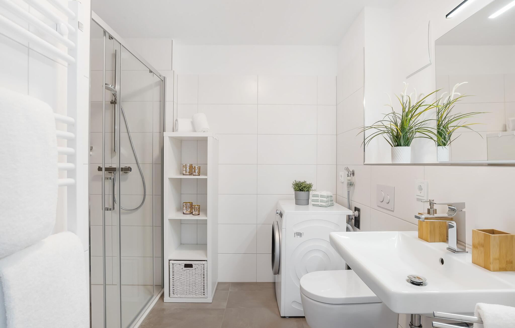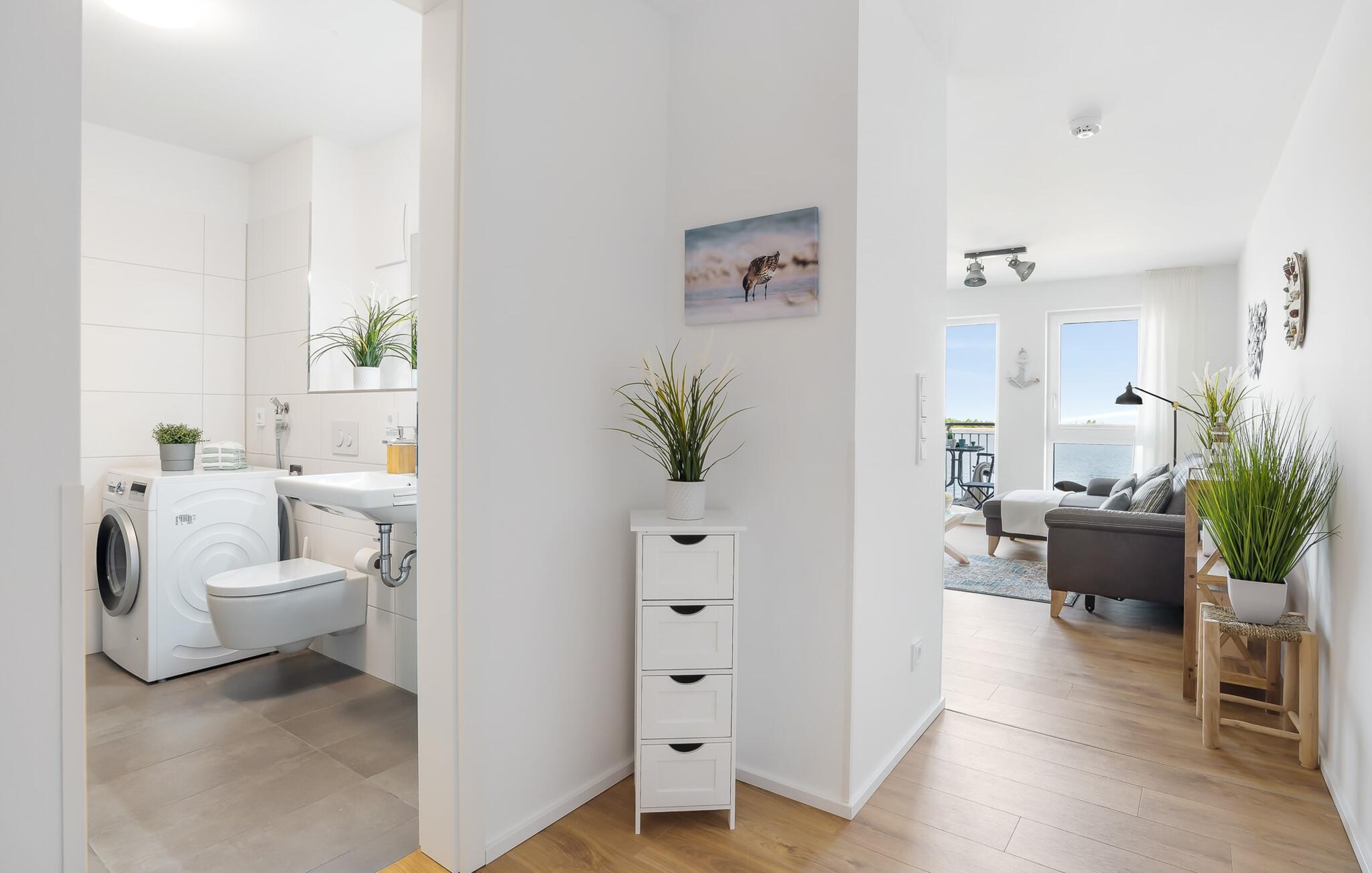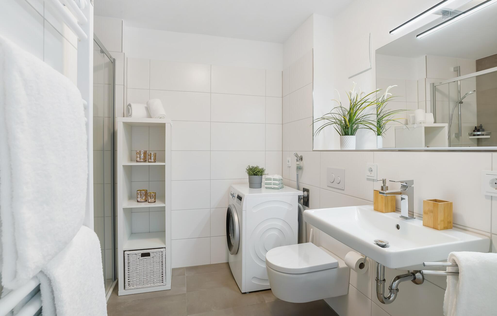 Das Bad lässt ebenfalls keine Wünsche offen und bietet mit der bodengleichen Dusche jedem STRANDLÄUFER eine wohltuende Erfrischung.