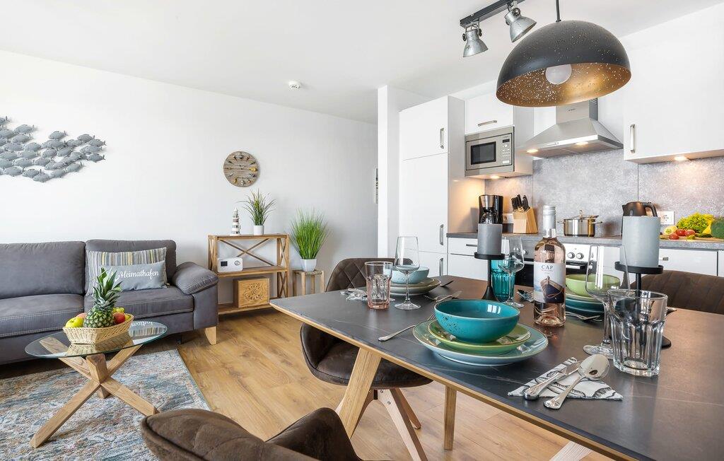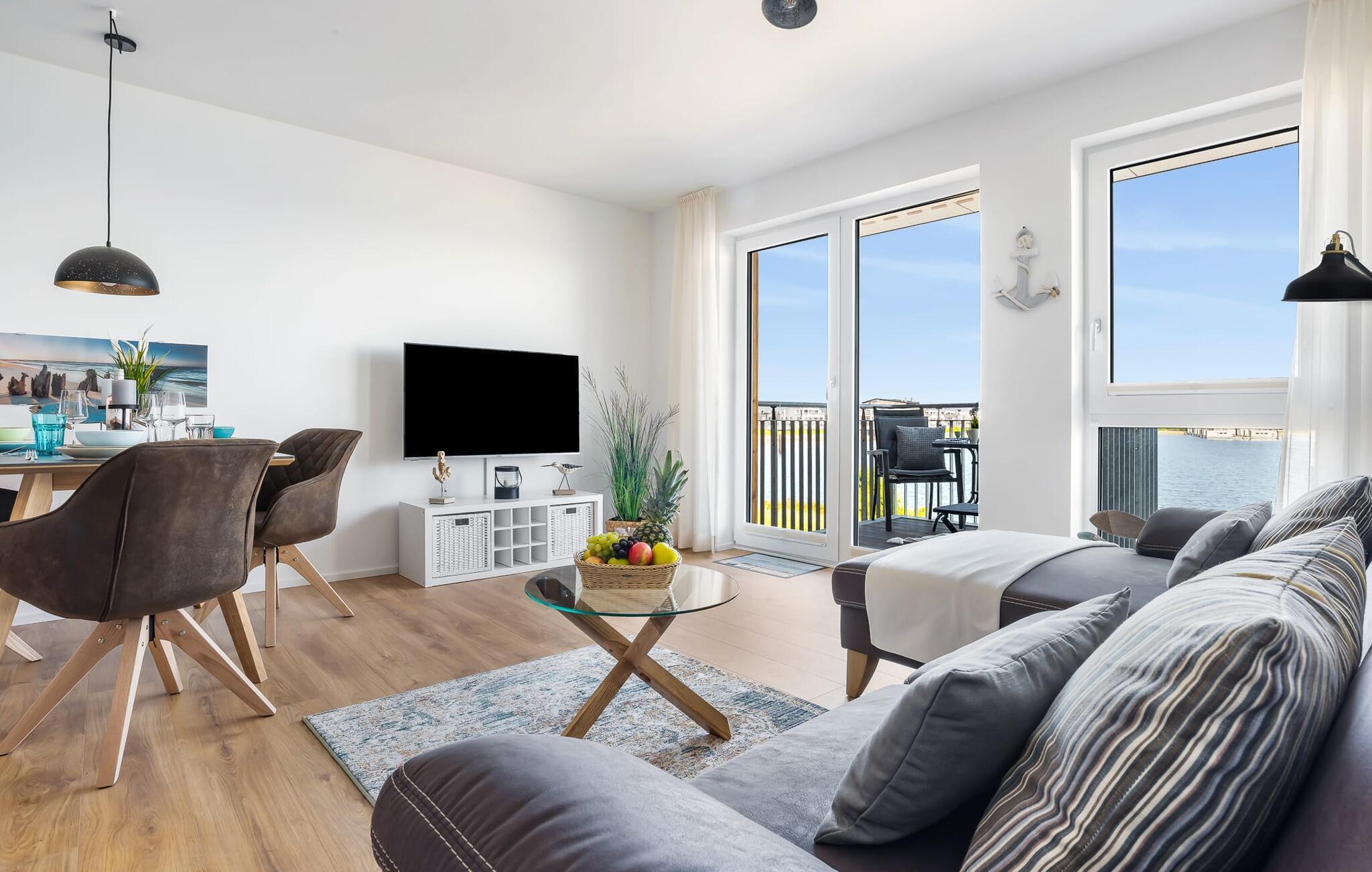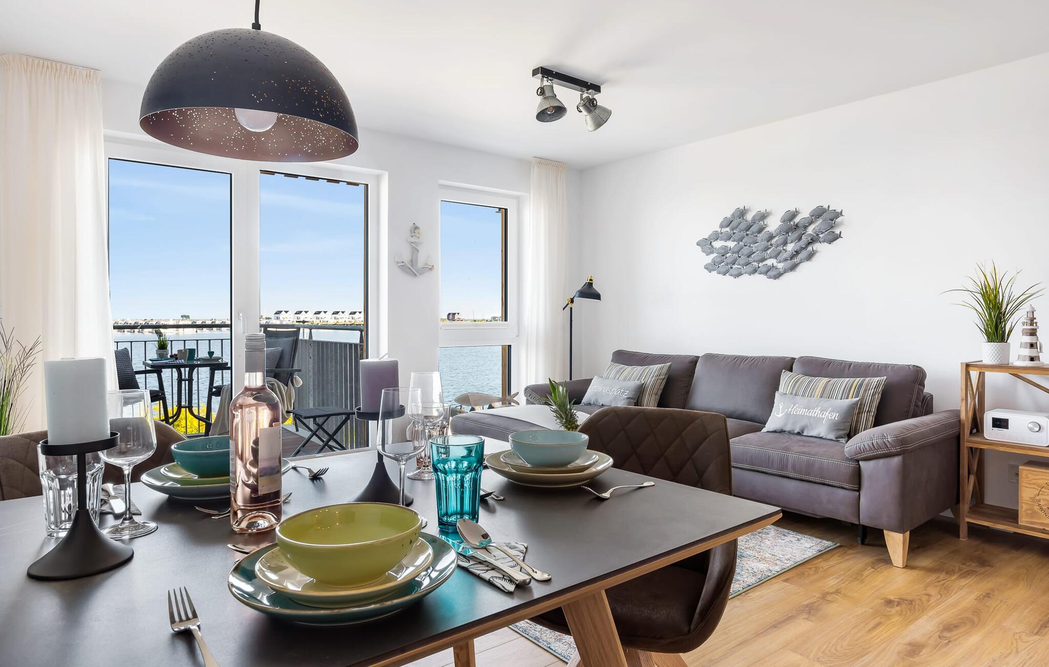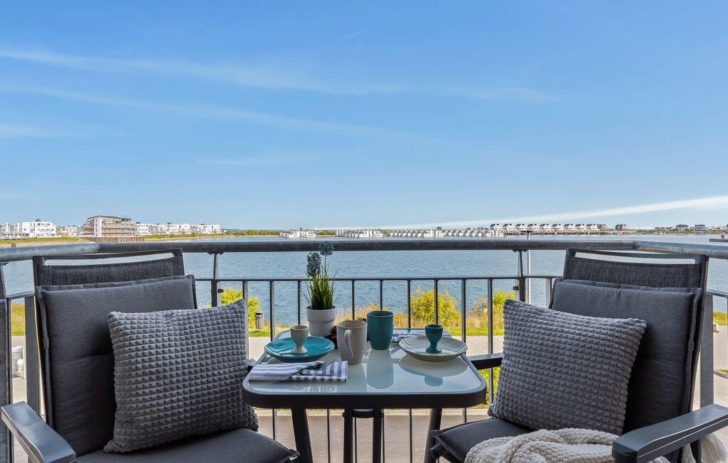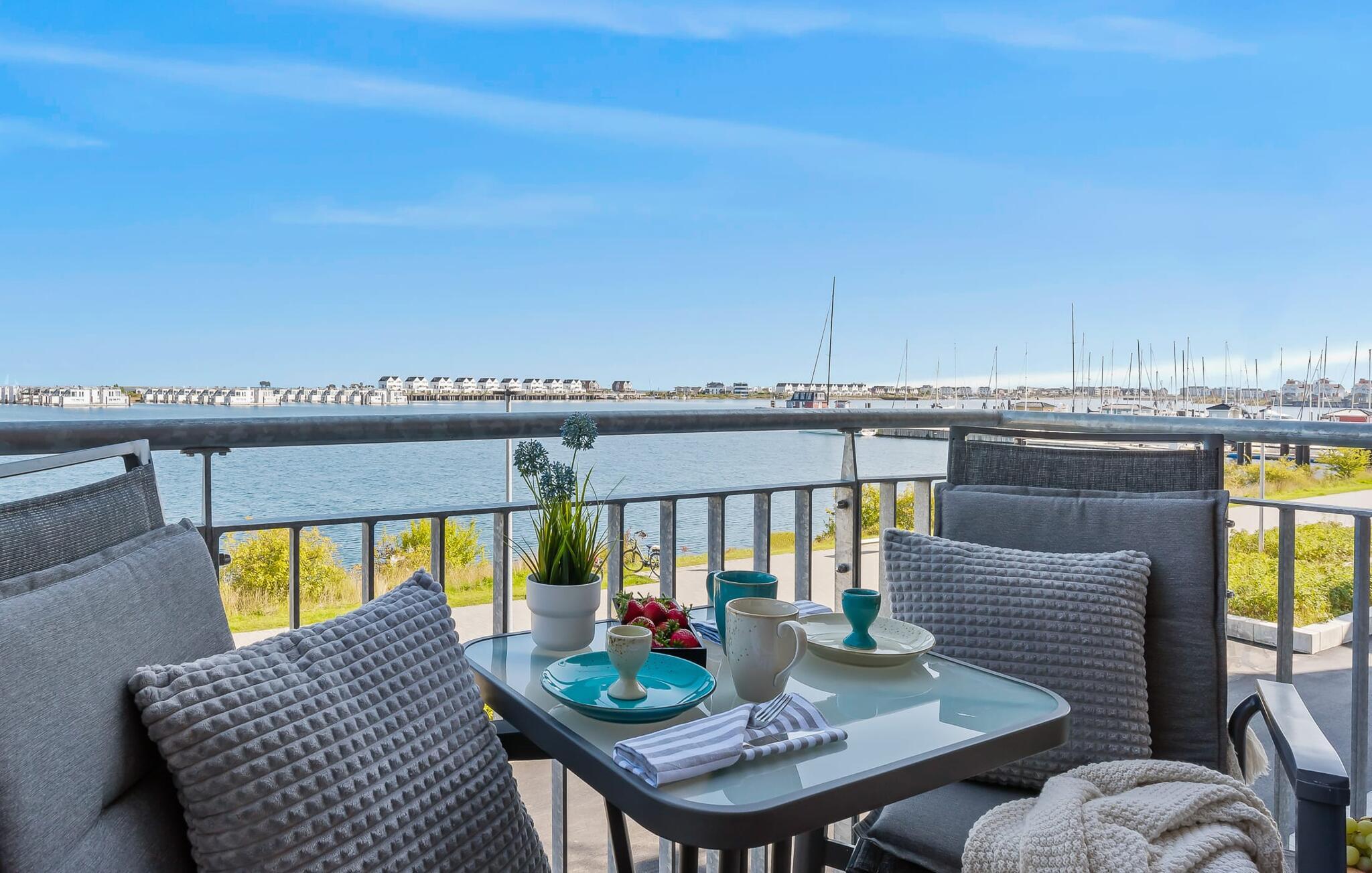 Moderne Ferienwohnung STRANDLÄUFER mit traumhaftem Marina- und Ostseeblick im OstseeResort Olpenitz.