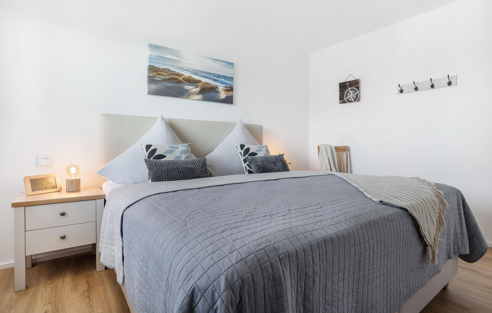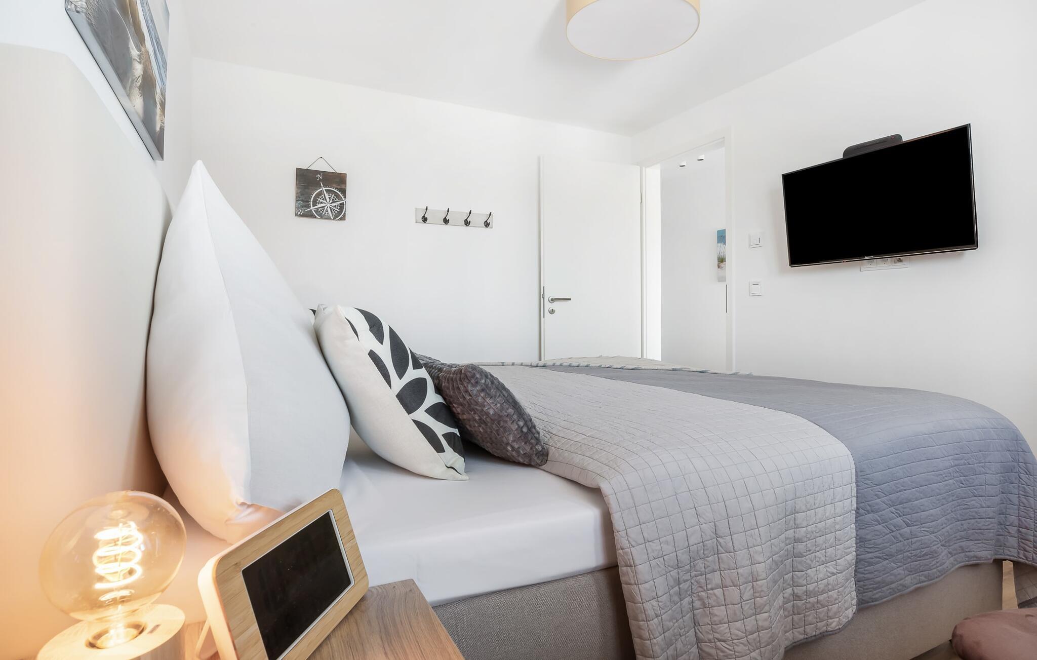 Im Schlafzimmer garantiert ein Doppelboxspringbett für erholsamen Schlaf und ein Fernseher sorgt für alternative Unterhaltung.