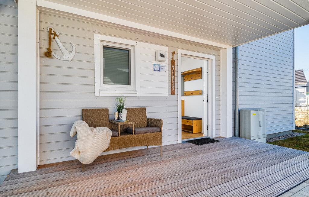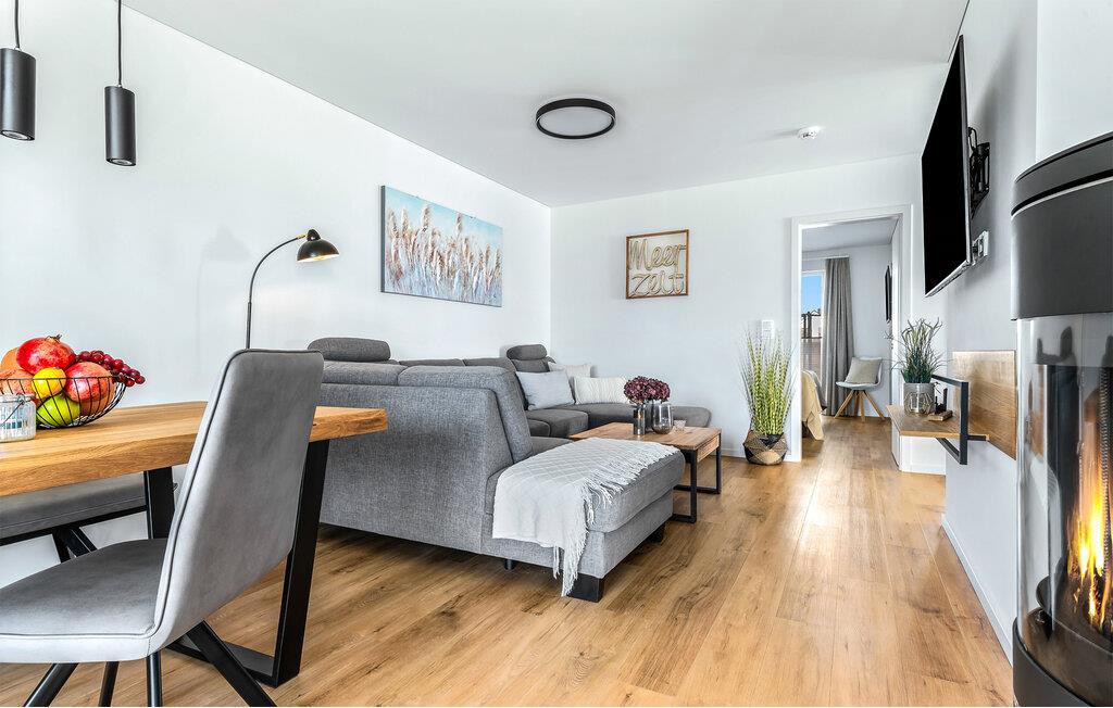 Moderne Ferienwohnung Strandleben am OstseeResort Olpenitz mit Terrasse, Infrarotkabine und Fußbodenheizung für erholsamen Urlaub.