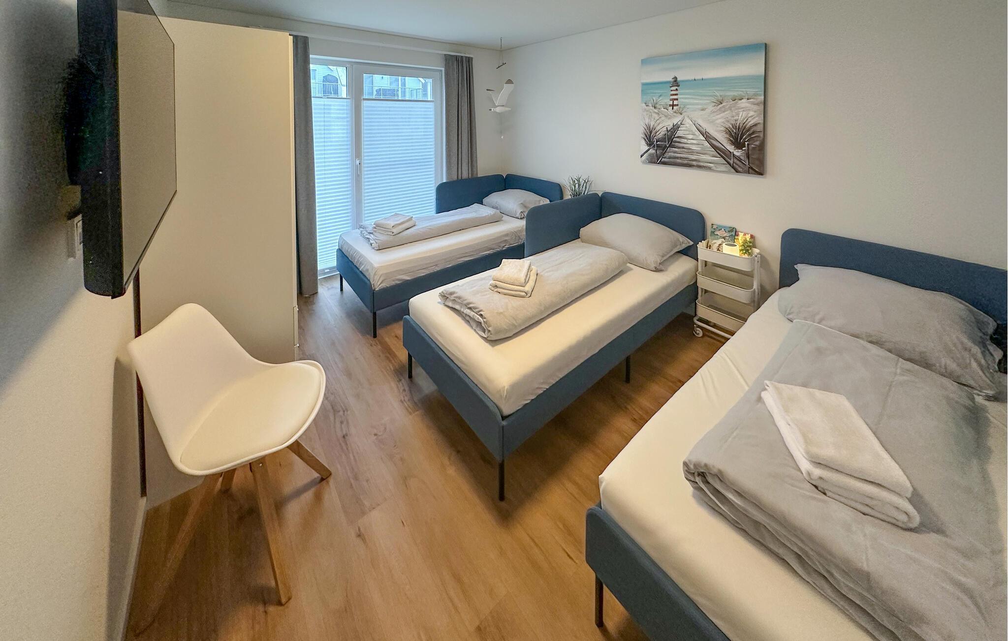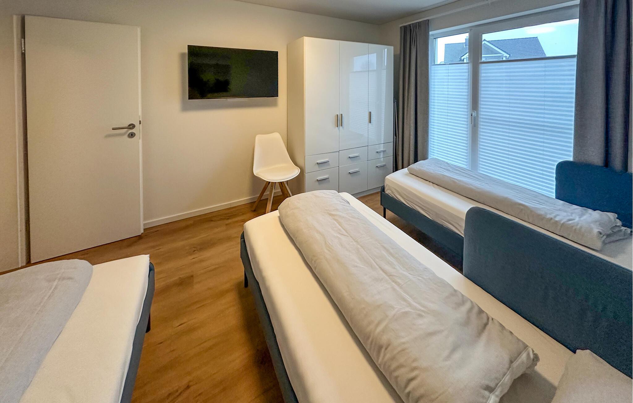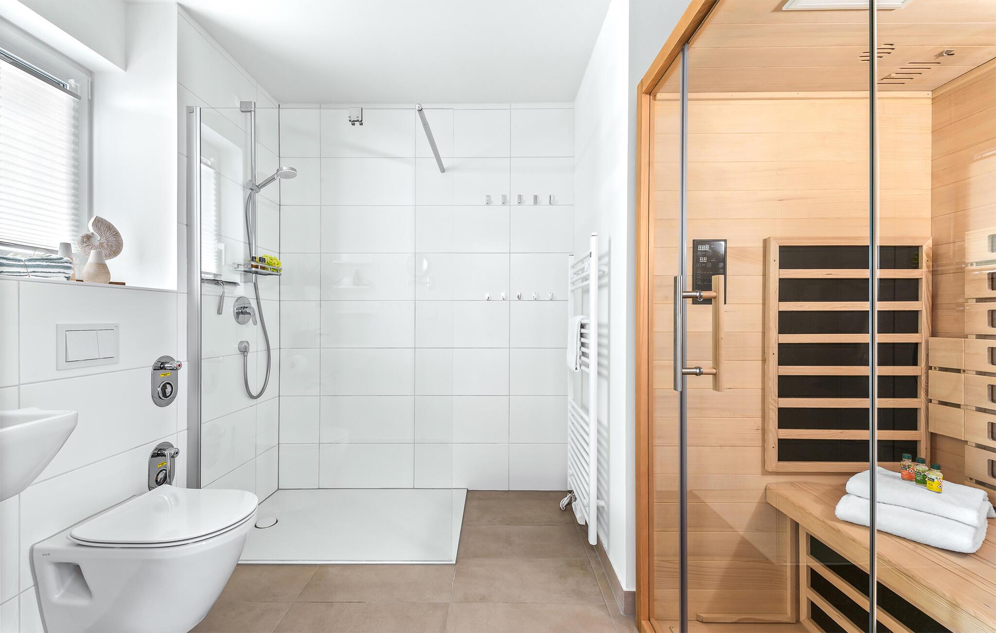 Die beiden Schlafzimmer sind ebenso stilvoll wie gemütlich eingerichtet und bieten euch einen erholsamen Schlaf in bequemen Betten. Das erste Schlafzimmer ist mit einem großen Boxspring-Doppelbett (180x200cm) und einem Fernseher ausgestattet und das zweite Schlafzimmer verfügt über drei Einzelbetten und ebenfalls einen Fernseher. Im luxuriösen Bad könnt ihr euch in der bodengleichen Dusche erfrischen oder in der Infrarotkabine entspannen und die wohlige Wärme auf eurer Haut spüren.