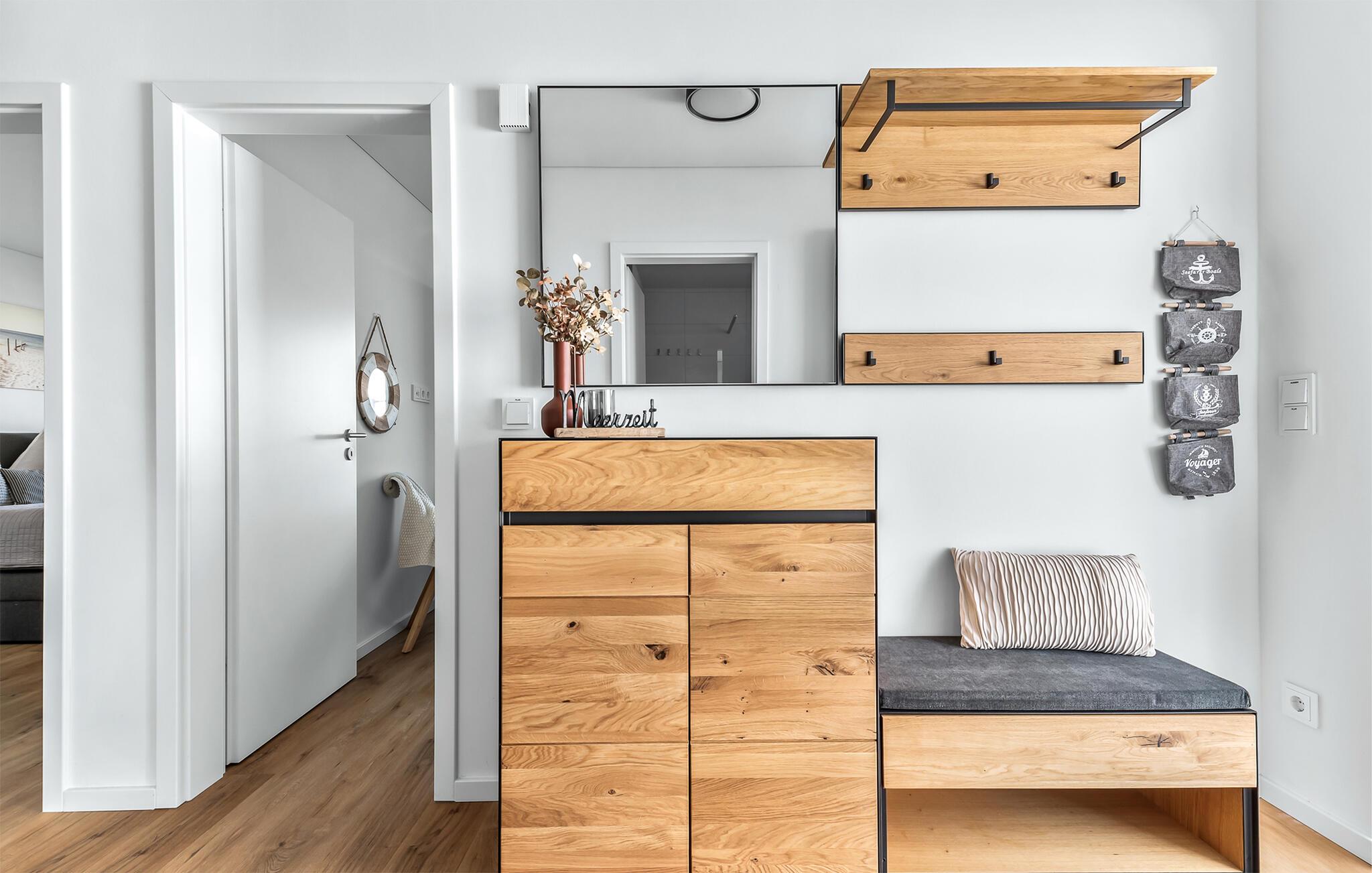 Die Einrichtung des Strandlebens ist modern und stilvoll mit rustikalen Echtholzmöbeln kombiniert. Hier könnt ihr euren Urlaub in einer harmonischen und entspannten Atmosphäre genießen und euch rundum wohlfühlen. Kinder und Hunde sind in STRANDLEBEN herzlich willkommen. Da die Ferienwohnung sich im Erdgeschoss befindet, ist die Ferienwohnung weitgehend barrierefrei. Wir freuen uns darauf, euch bald im Strandleben begrüßen zu dürfen!