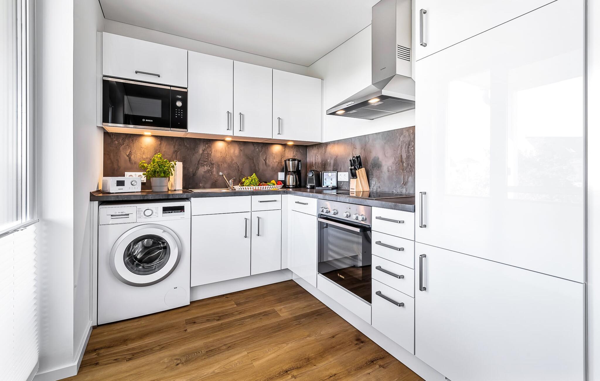 Im Urlaub ist Zeit für kreatives Kochen, die rundum ausgestattete Wohnküche lässt hierbei keine Wünsche offen.