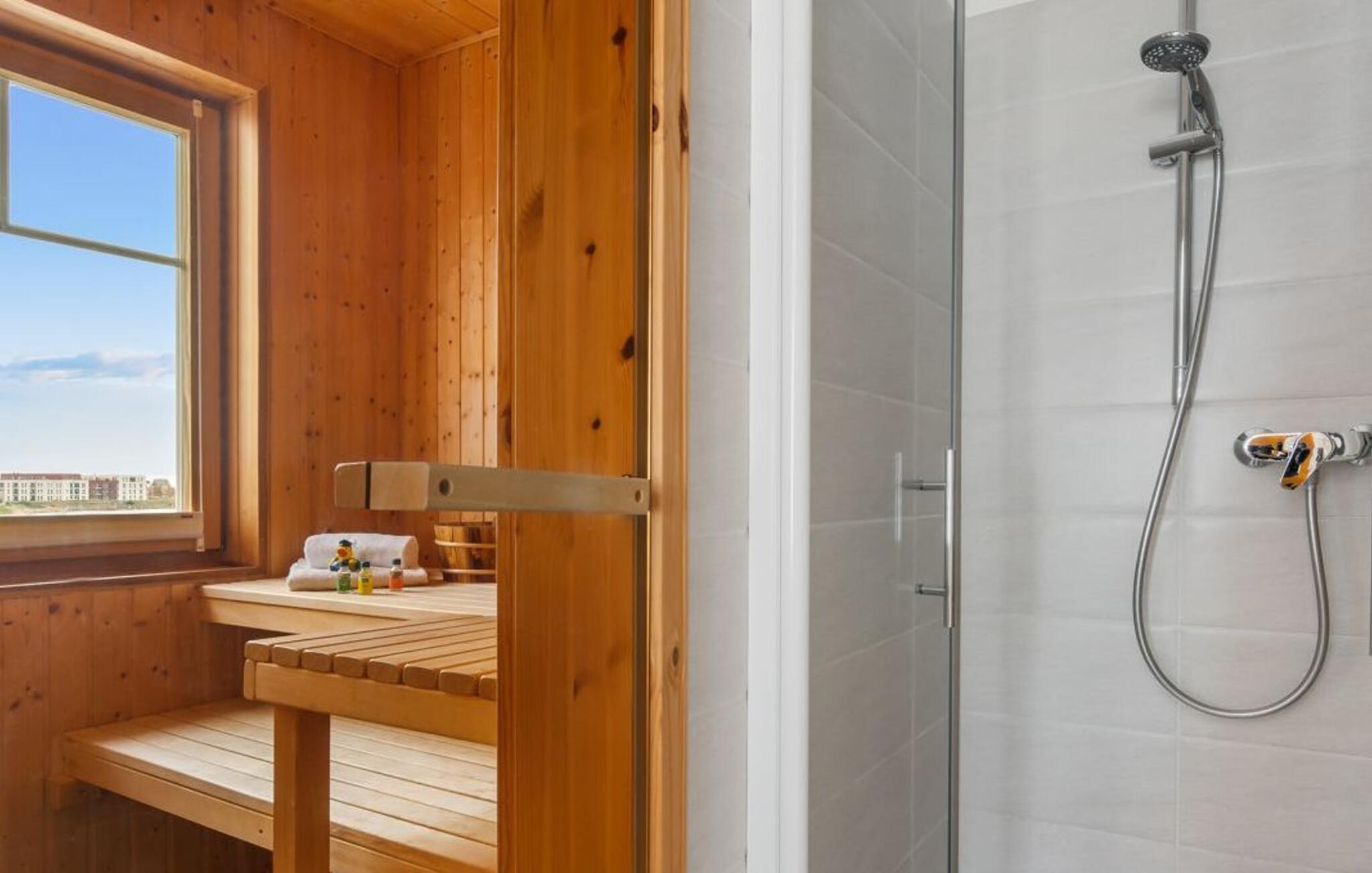 Das Highlight der STRANDVILLA ist ganz ohne Frage die 3. Etage, die sich als private Wellnessoase mit einer finnischen Sauna mit Blick auf den Strand und einer bodengleichen Dusche präsentiert. Oben angekommen empfängt euch der Ruhebereich mit bodentiefen Fenstern und einem phänomenalen Ringsum-Blick auf Strand und Wasser. Auf der angrenzenden, großen Terrasse lädt eine kuschelige Doppelliege nach einem Saunagang zum Träumen und Entspannen ein. Schöner kann ein Urlaub nicht sein.