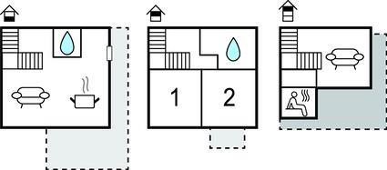 Badezimmer (nr. 1) - WC. Warmes und kaltes Wasser. Dusche und Badewanne