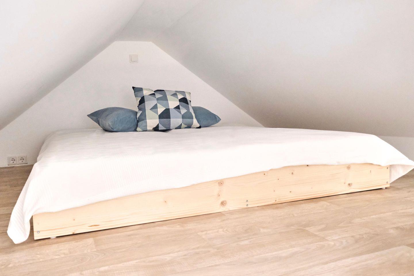 Die 3 -Zimmer-Wohnung ist mit einem Doppelbett, zwei Einzelbetten und einem Einzelbett im offenen Hems ausgestattet. Sie kann mit bis zu 5 Personen bewohnt werden, Nutzung von WLAN ist kostenfrei möglich. Die moderne und voll ausgestattete Einbauküche ist ideal für Selbstversorger. Die Wohnung verfügt über ein neues Duschbad mit WC.