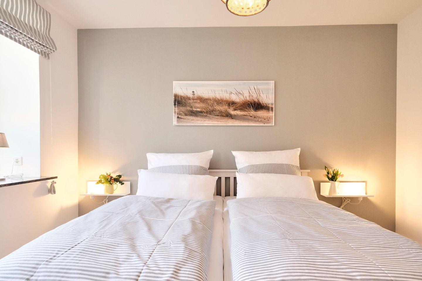 Die 6 -Zimmer-Wohnung ist mit drei Doppelbetten, zwei Einzelbetten und einem Etagenbett ausgestattet. Sie kann mit bis zu 10 Personen bewohnt werden, Nutzung von WLAN ist kostenfrei möglich. Die moderne und voll ausgestattete Einbauküche ist ideal für Selbstversorger. Die Wohnung verfügt über ein neues Duschbad mit WC.