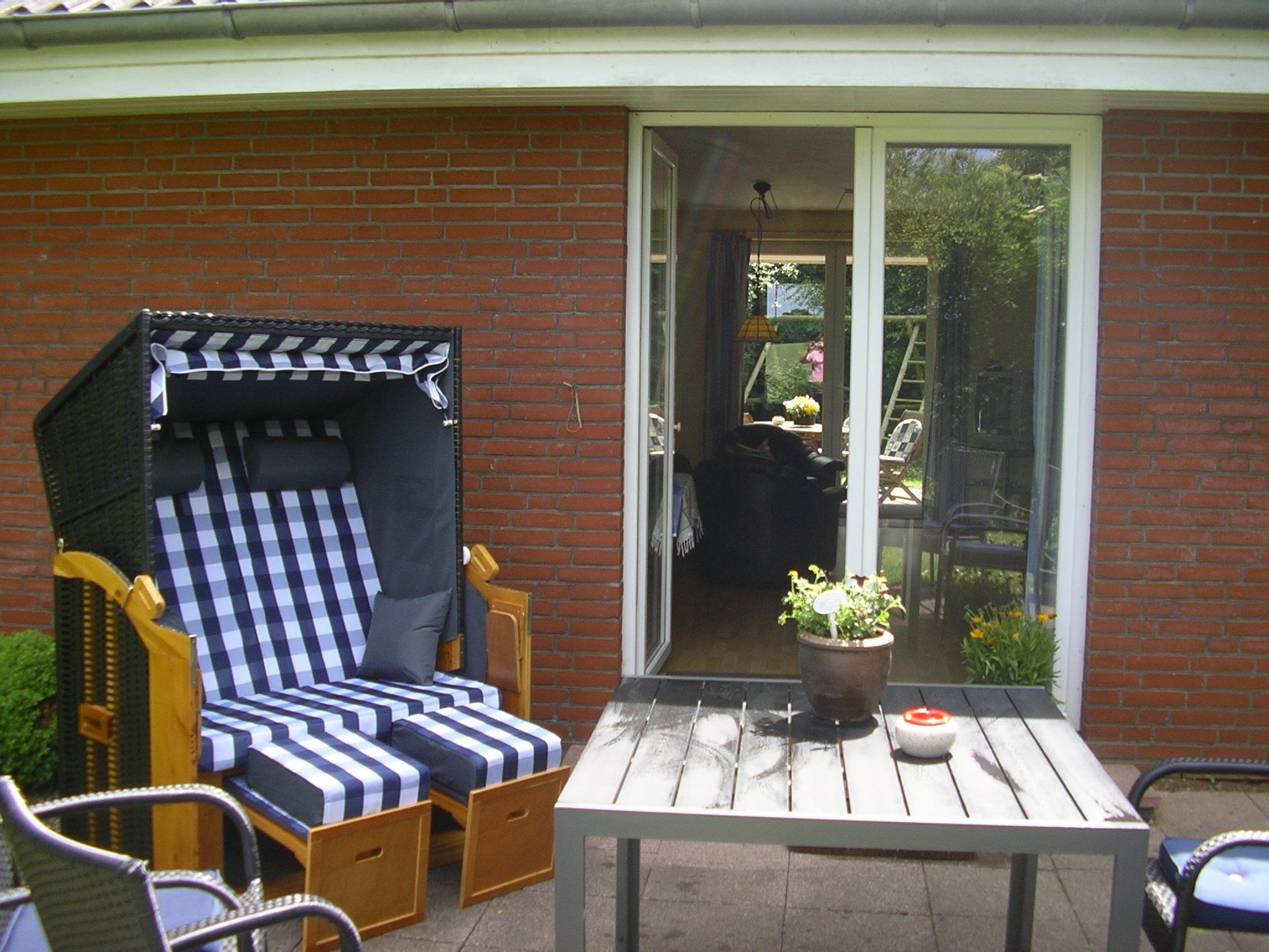 Beide Ferienhäuser sind von Garten und Blumenbeeten umgeben und eingezäunt, ideal auch für Ihre Hunde, die bei uns herzlich willkommen sind. Auf der Terrasse mit Holzmöbeln, Liegestühlen, Sonnenschirm und Strandkorb können Sie herrlich ausspannen oder sich auf Ihren Grillabend freuen. Die jüngeren Urlauber dürfen sich am Schaukel- und Klettergerüst austoben oder in der Sandkiste (mit Abdeckmöglichkeit) kleine Kunstwerke erstellen.