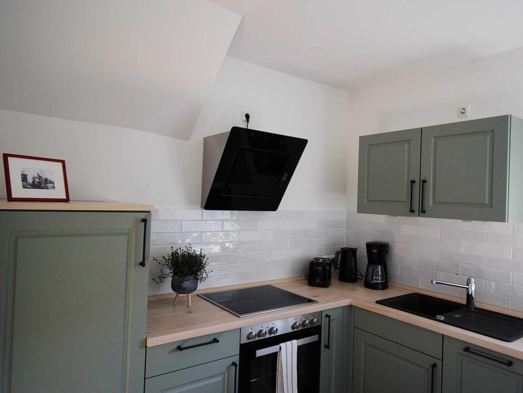 Die Küche ist mit Cerankochfeld, Abzugshaube, Ofen,