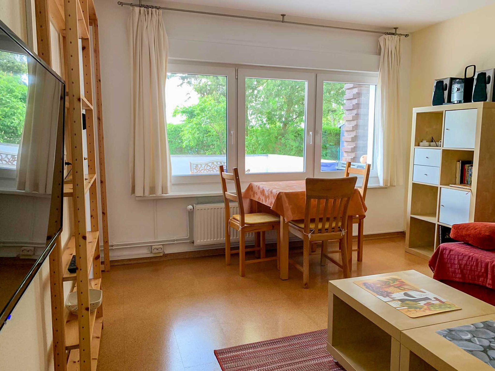 Im Wohnzimmer lässt sich gut ein selbstmitgebrachtes Kinderbett aufstellen. Das Haus ist geeignet für Allergiker (Hausstaub), da es Fliesen und Korkböden hat.