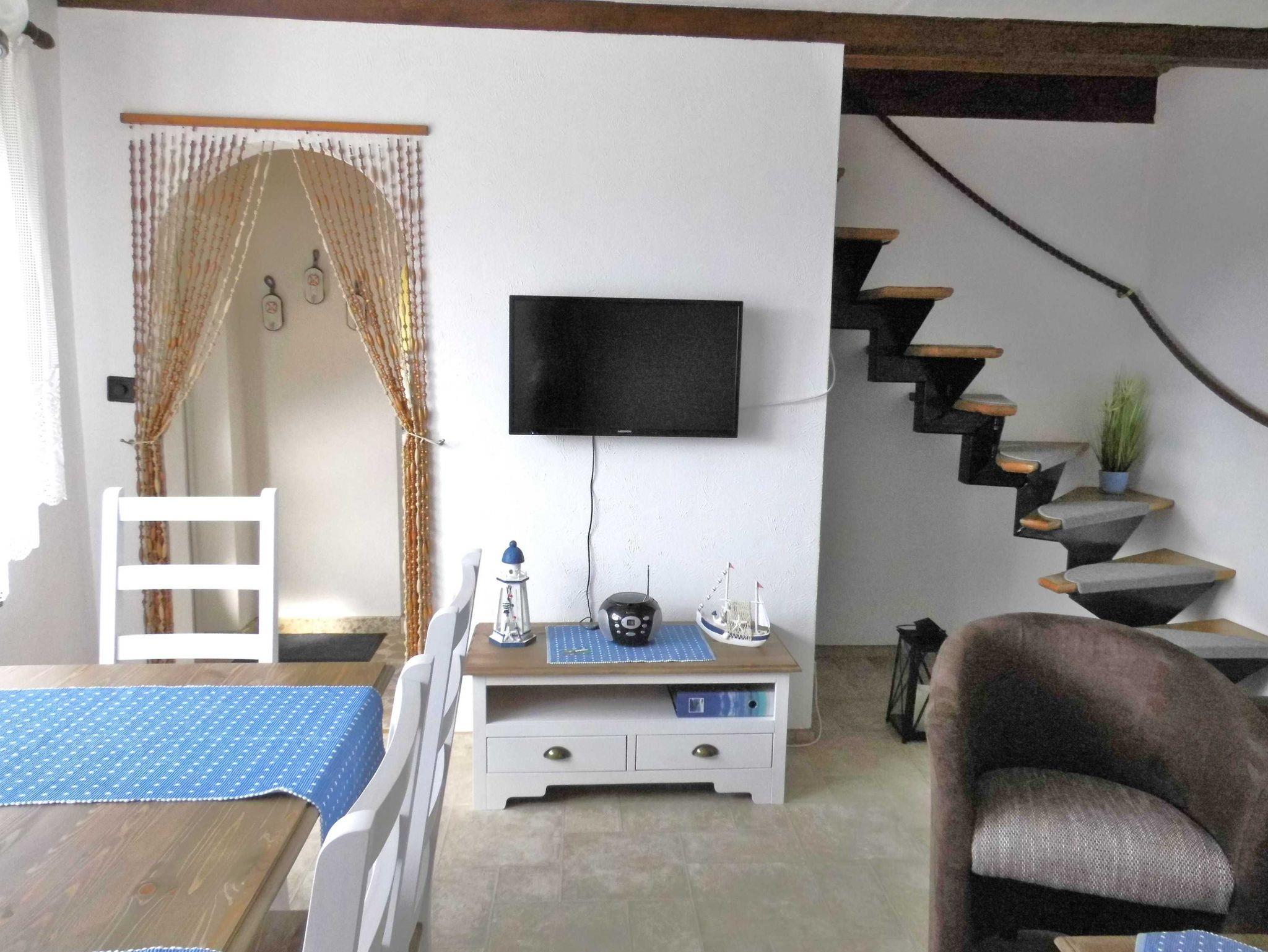 Das Ferienhaus Schiffchen mit einem Schlafzimmern, einer Küche, einem Wohn- und Essbereich, einem Bad und einem kleinen Flur befindet sich in Stahlbrode, dem kleinen idyllischen Fischerdorf mit rund 200 Einwohner.
