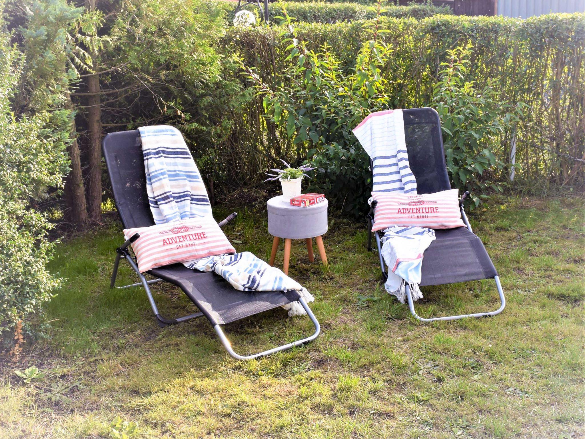 Die Sonnenterrasse mit Tisch, gemütlichen Gartenstühlen und Sonnenliegen sowie Grill, ist eine kleiner Ort zum Entspannen und Relaxen. Das umliegende Grundstück ist ca 250 m² groß und mit einem 120 cm hohen Zaun umzäunt. Kleine Kinder und Vierbeiner haben auch hier viel Spaß!