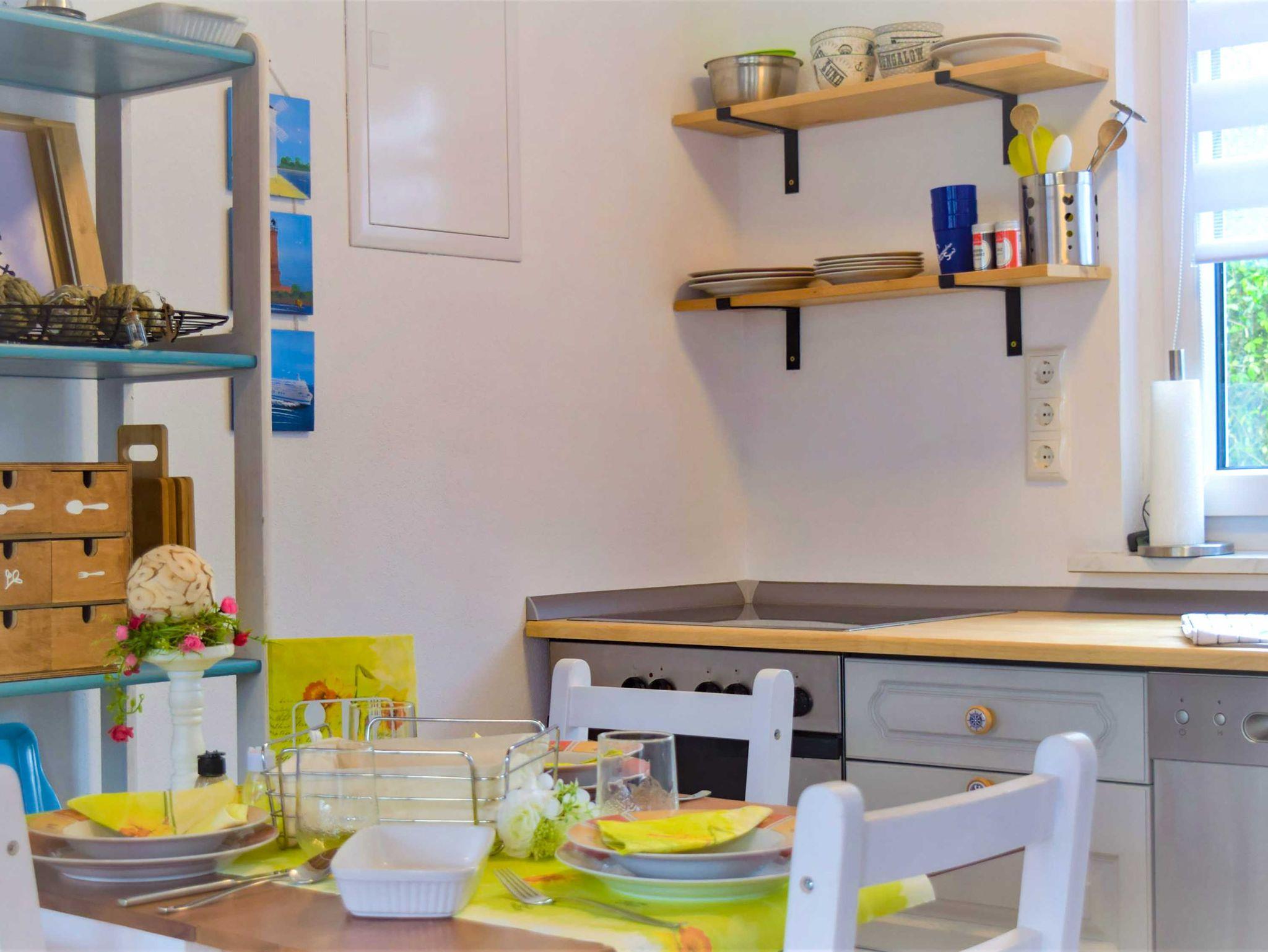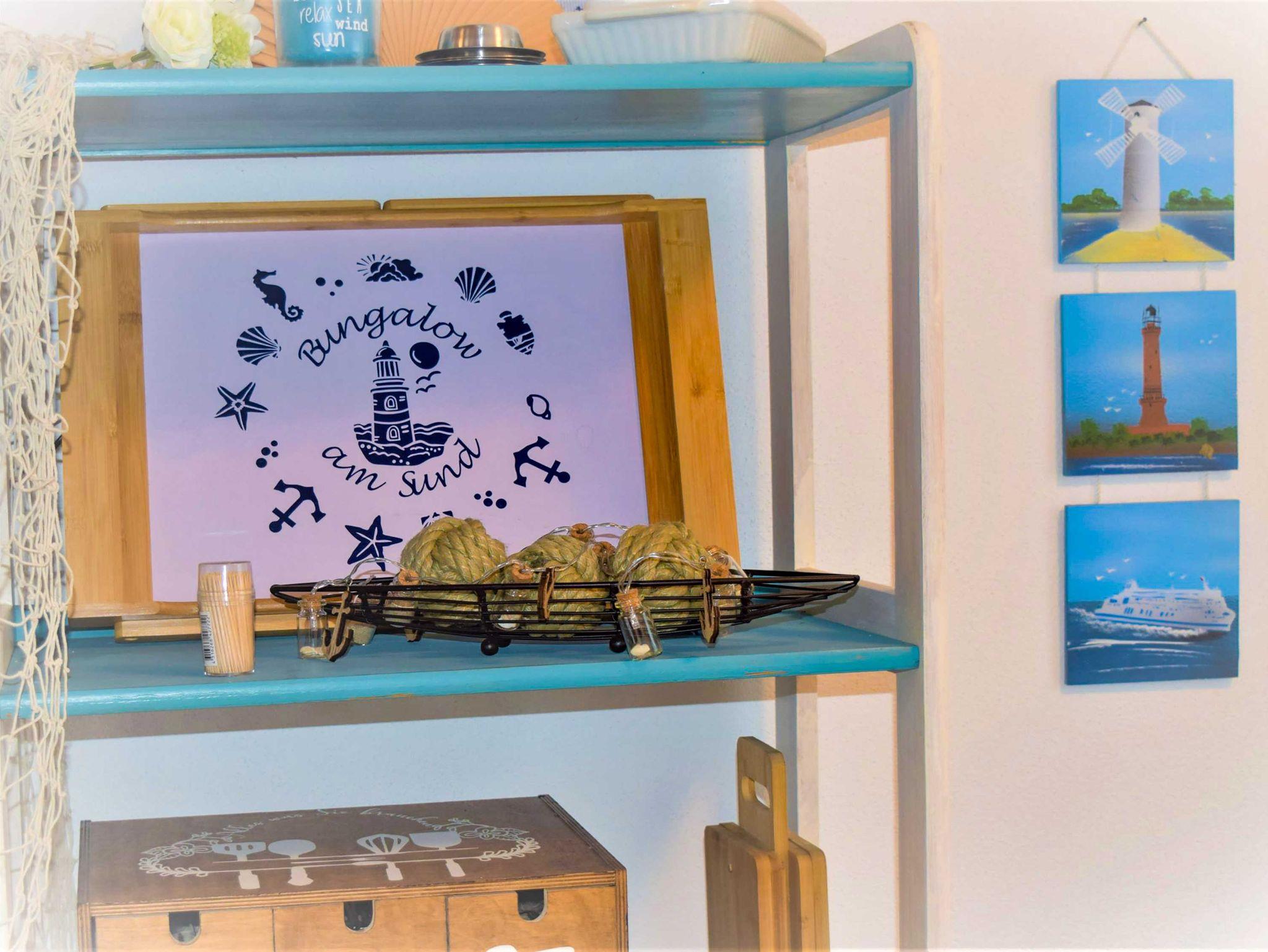 Der 45 m² große Bungalow am Sund ist ein kleines, im maritimen Landhausstil eingerichtetes Ferienhaus, am Strelasund. Im Häuschen, mit selbst entworfenen Upcycling Möbeln, können bis zu 3 Personen ihren Urlaub verbringen. Das offene Wohnzimmer mit Fernseher sowie Radio und die voll ausgestattete Küche mit Kaffeemaschine, Toaster, Wasserkocher, Geschirrspüler, Herd, Backofen und einem Kühlschrank mit Gefrierfach laden zum ausgedehnten Frühstück oder Spieleabend ein. Es stehen Ihnen 2 helle Schlafzimmer mit einem Einzelbett (90x190) und einem Doppelbett (elektisch verstellbar) (180x190) zur Verfügung. Die Zimmer sind ohne Türen miteinander verbunden. Es gibt lediglich eine verschließbare Tür zum Bad, das mit Dusche und WC ausgestattet ist.